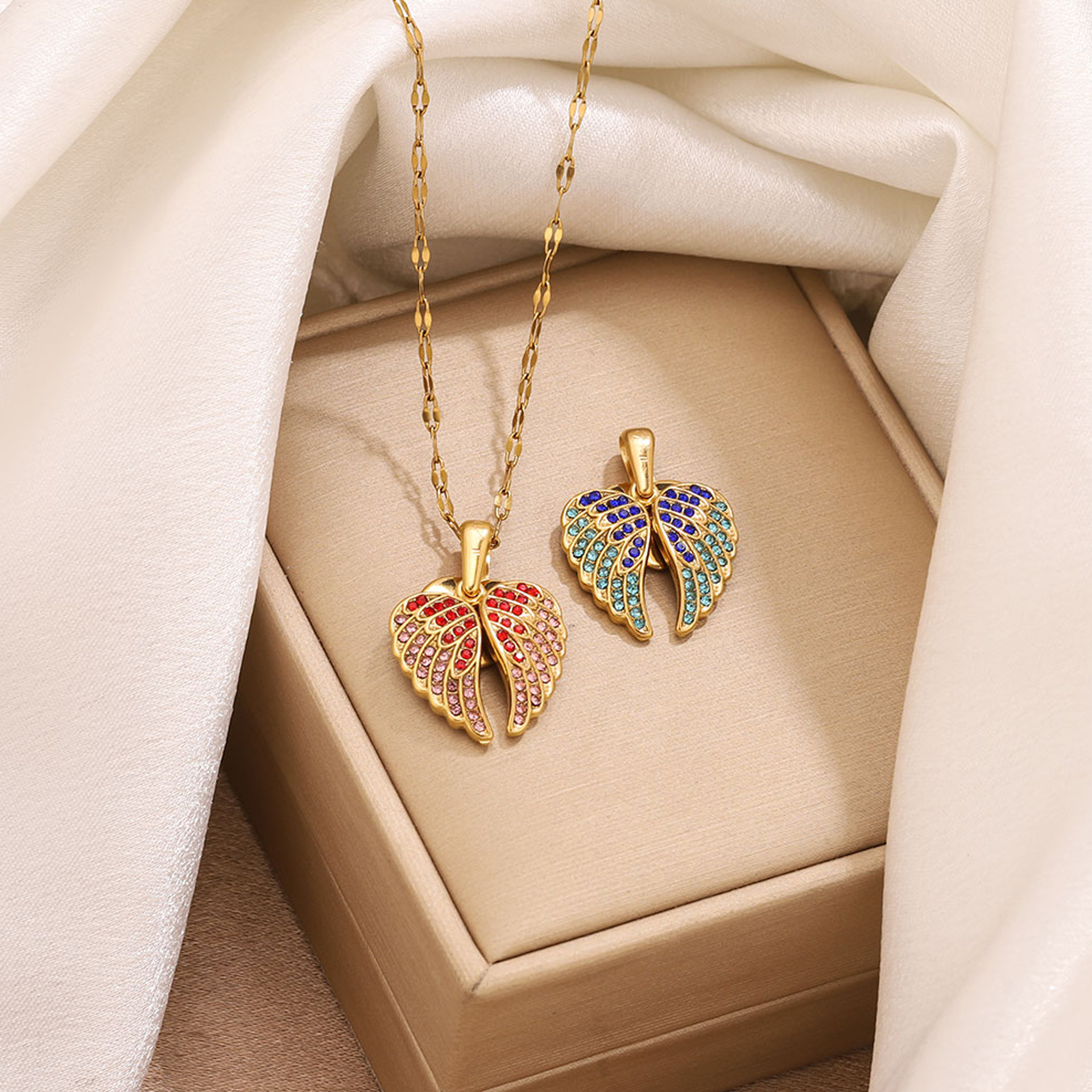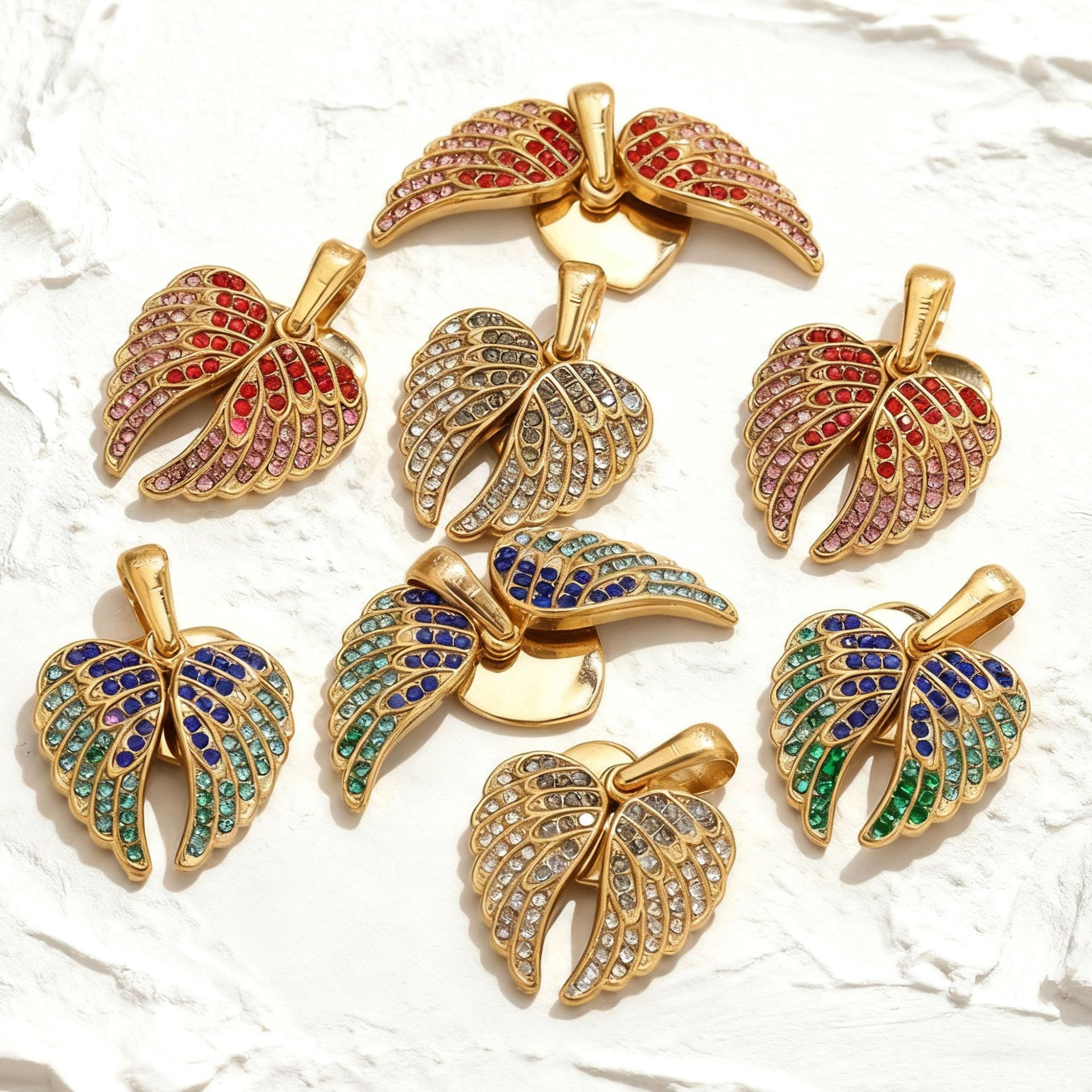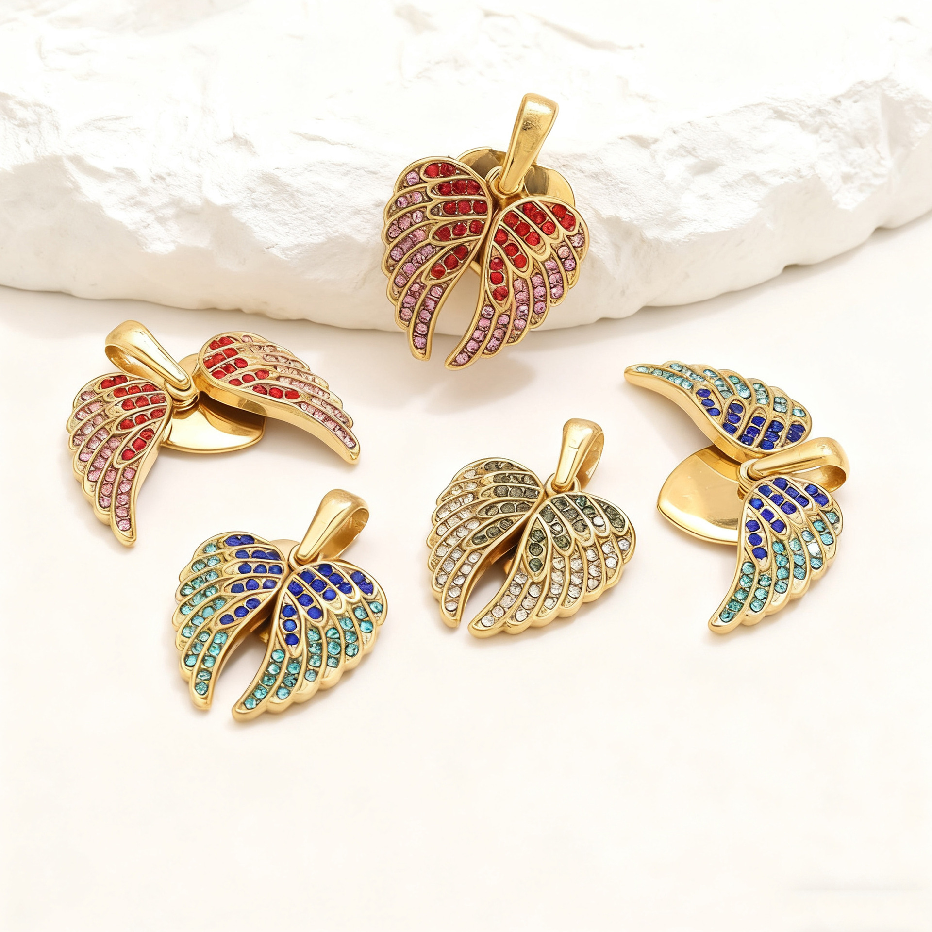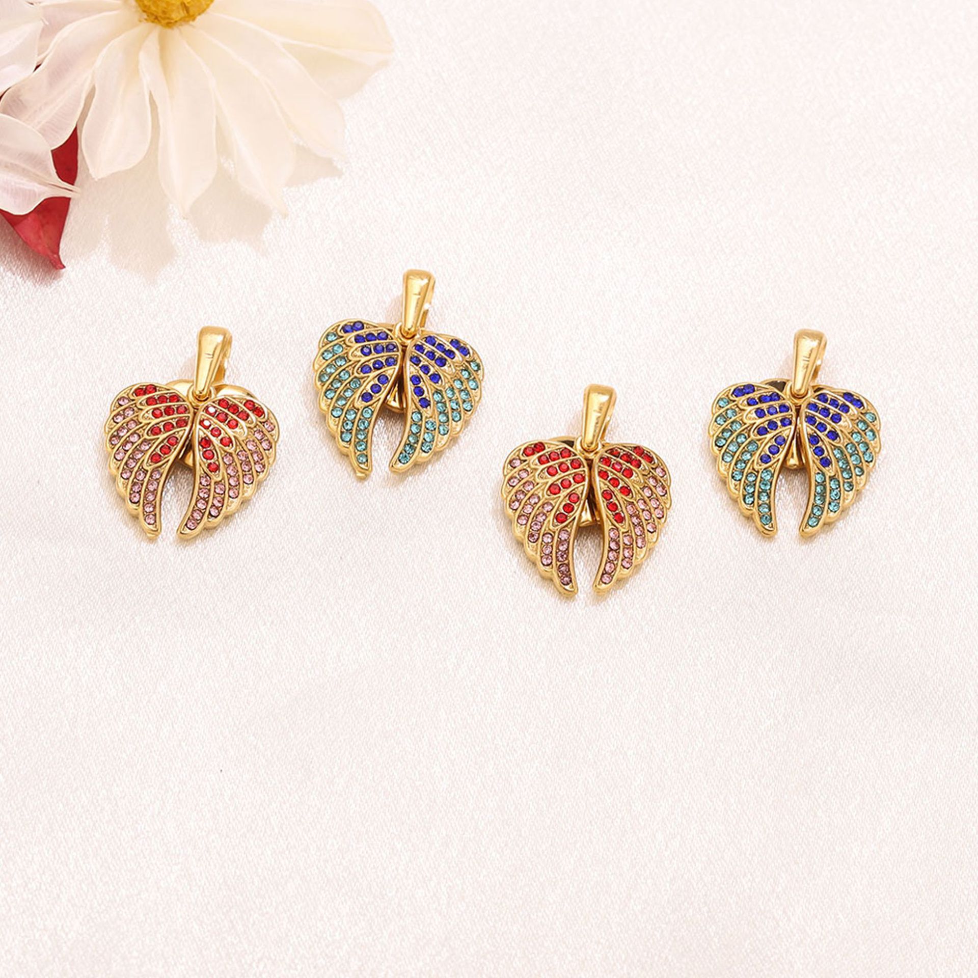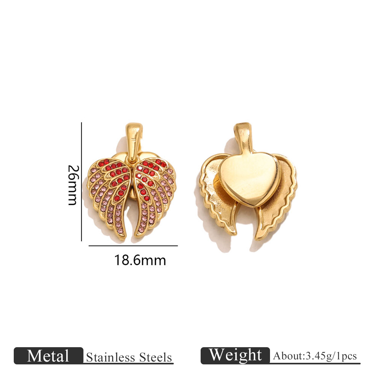 Colgantes de acero inoxidable de diamantes de imitación , acero inoxidable 304, Corazón con alas, chapado en color dorado, Bricolaje & con diamantes de imitación, más colores para la opción, 18.6x26mm, Vendido por UD