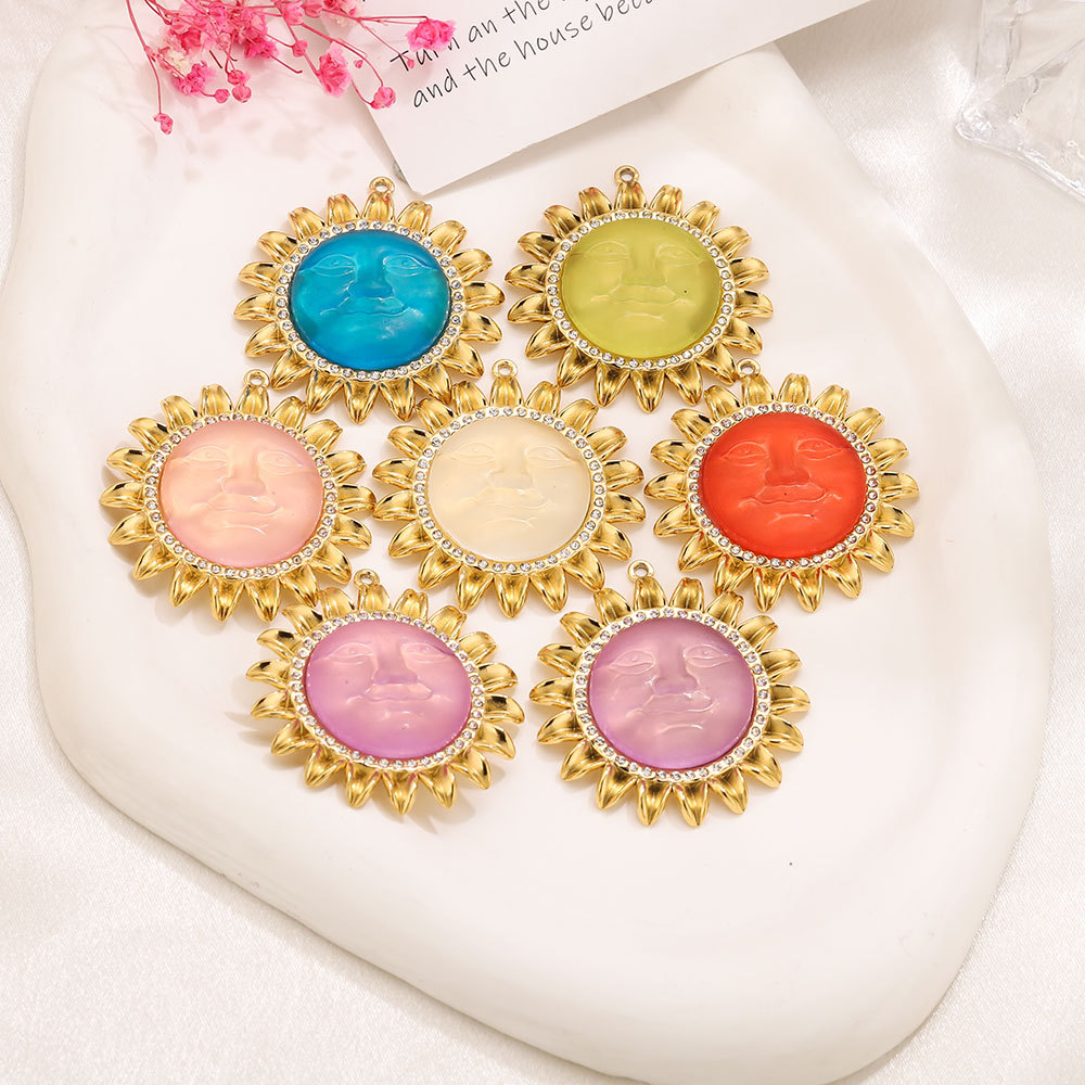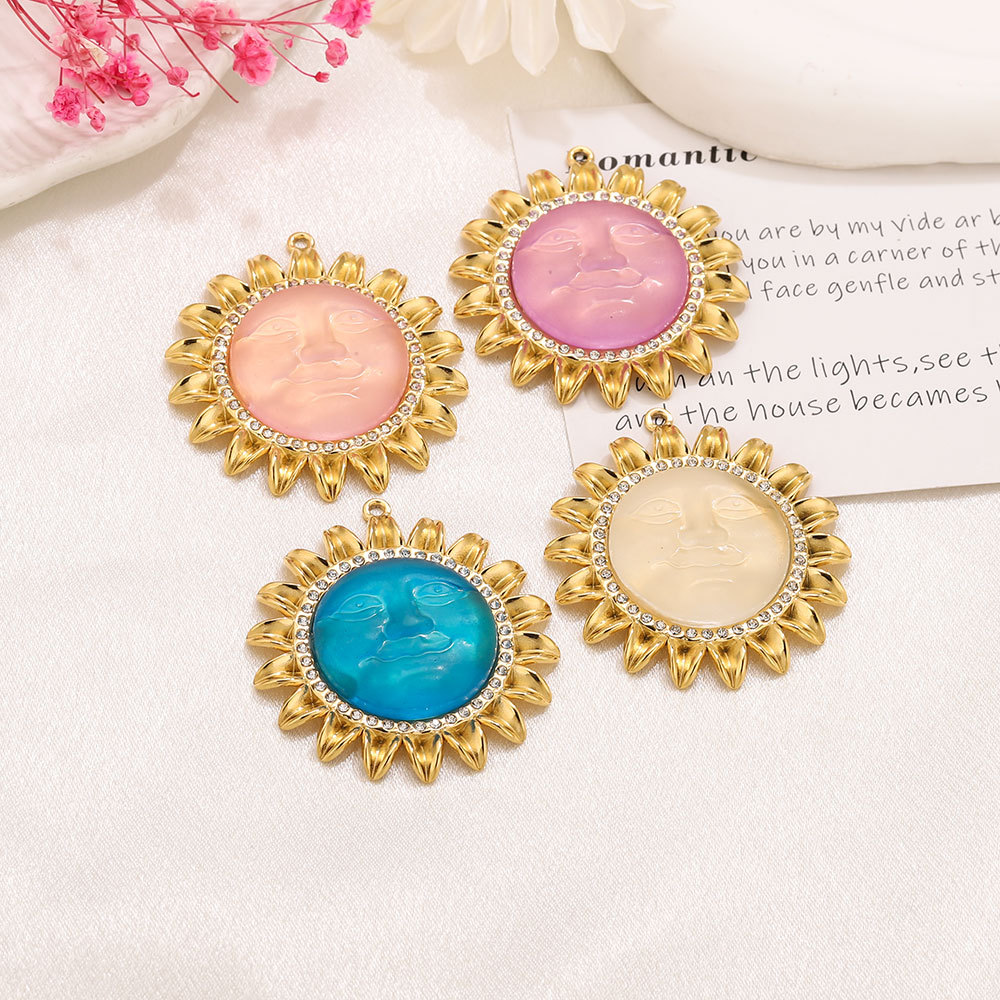 Colgantes de acero inoxidable de diamantes de imitación , acero inoxidable 304, con Acrílico, Flor, chapado en color dorado, Bricolaje & con diamantes de imitación, más colores para la opción, 41.5x45mm, agujero:aproximado 1.8mm, Vendido por UD