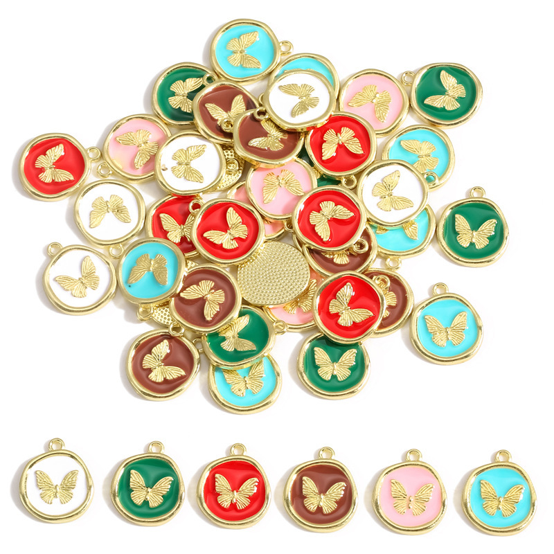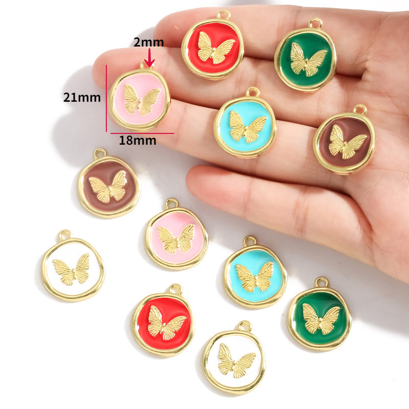 Colgantes de esmalte de la aleación del cinc, aleación de zinc, Redondo aplanado, chapado en color dorado, Bricolaje & con el patrón de la mariposa, más colores para la opción, 21x18mm, Vendido por UD