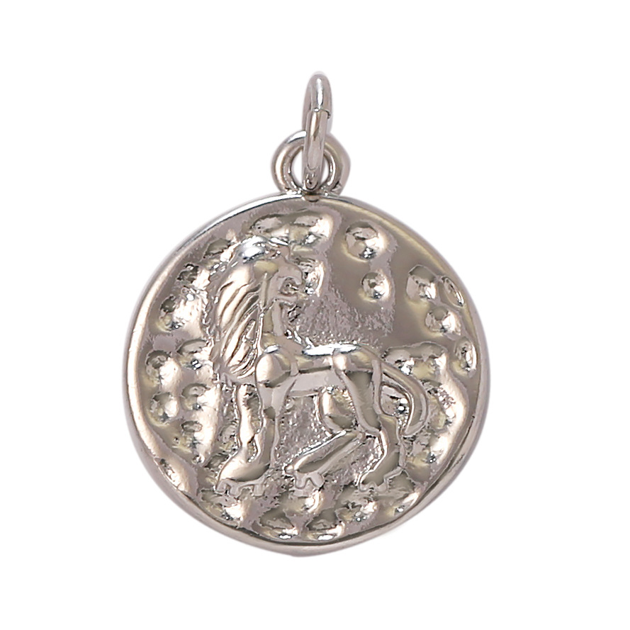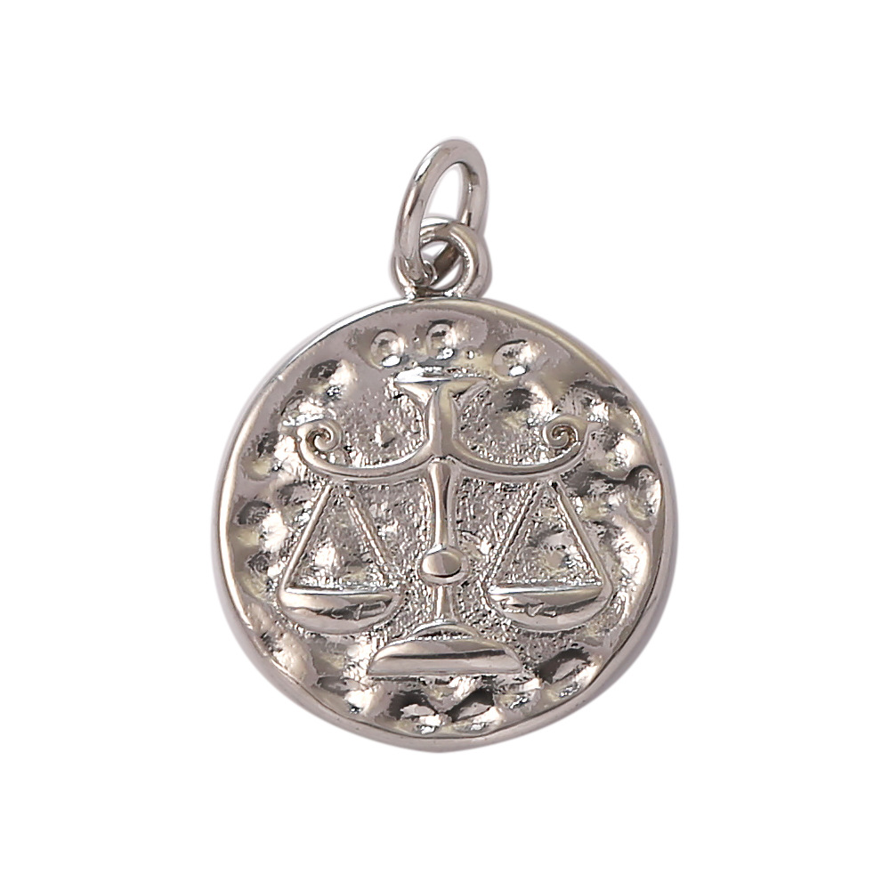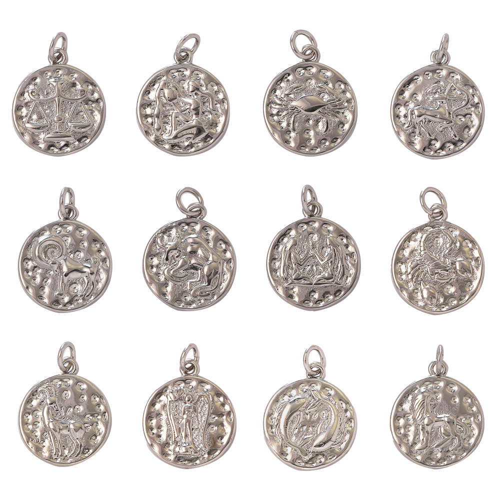 Colgantes de la joyería de cobre amarillo, metal, 12 Signos del Zodíaco, chapado en color de plata, Bricolaje, plateado, Vendido por UD