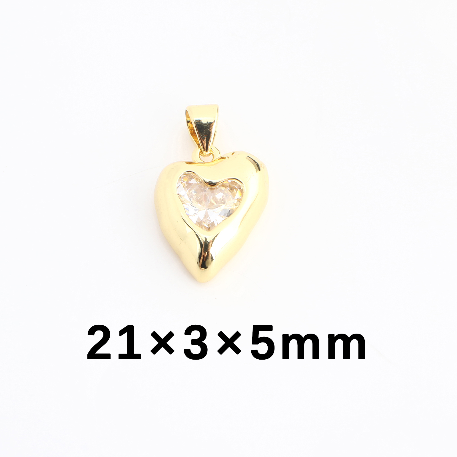 Colgantes de latón cúbicos Circonia (CZ), metal, Corazón, Bricolaje & micro arcilla de zirconia cúbica, dorado, 21x3x5mm, Vendido por UD