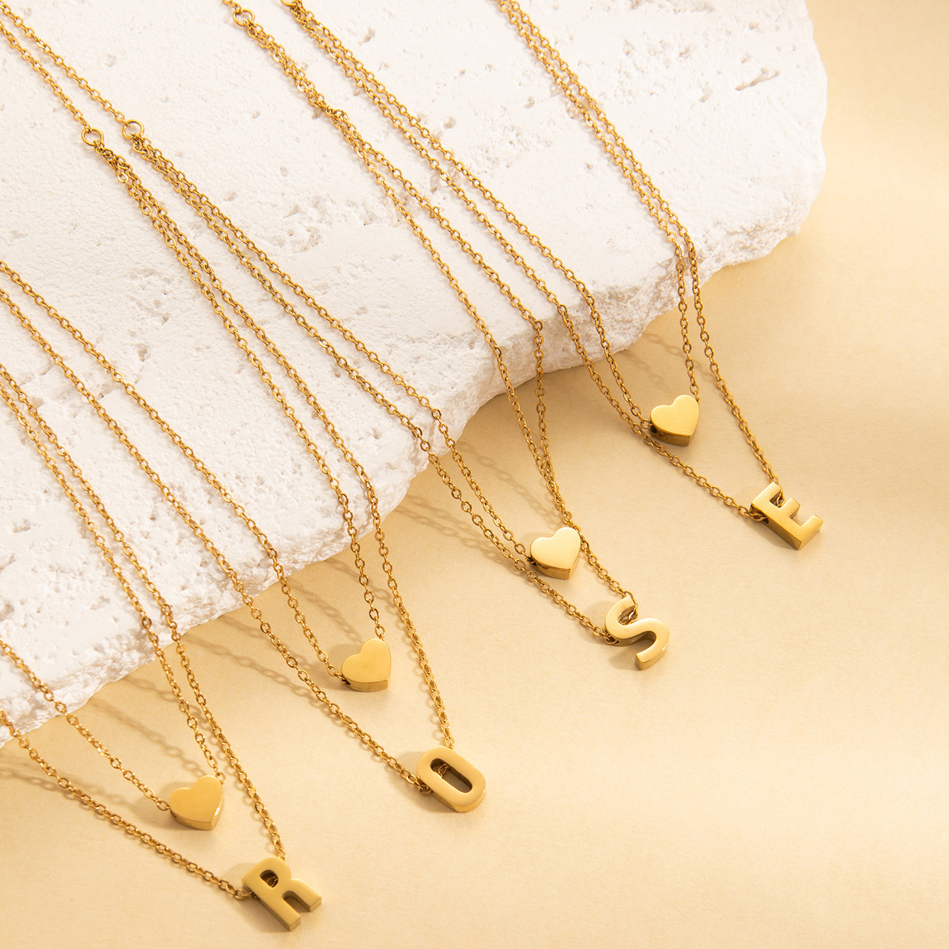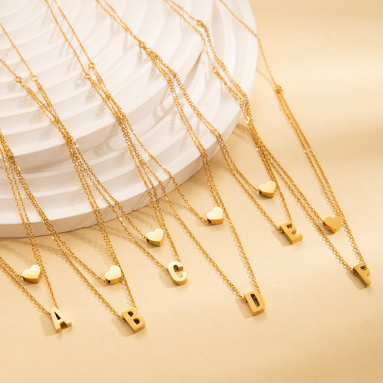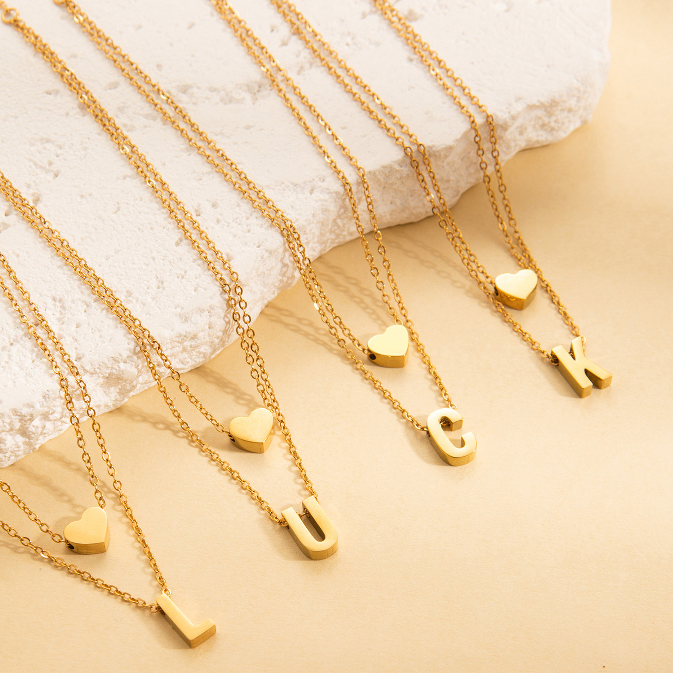 Collar de Acero Inoxidable, acero inoxidable 304, Carta del alfabeto, chapado en color dorado, Doble capa & unisexo & diferentes patrones para la opción, Vendido por UD