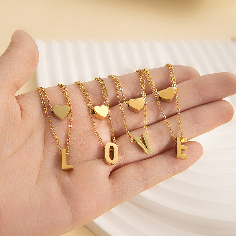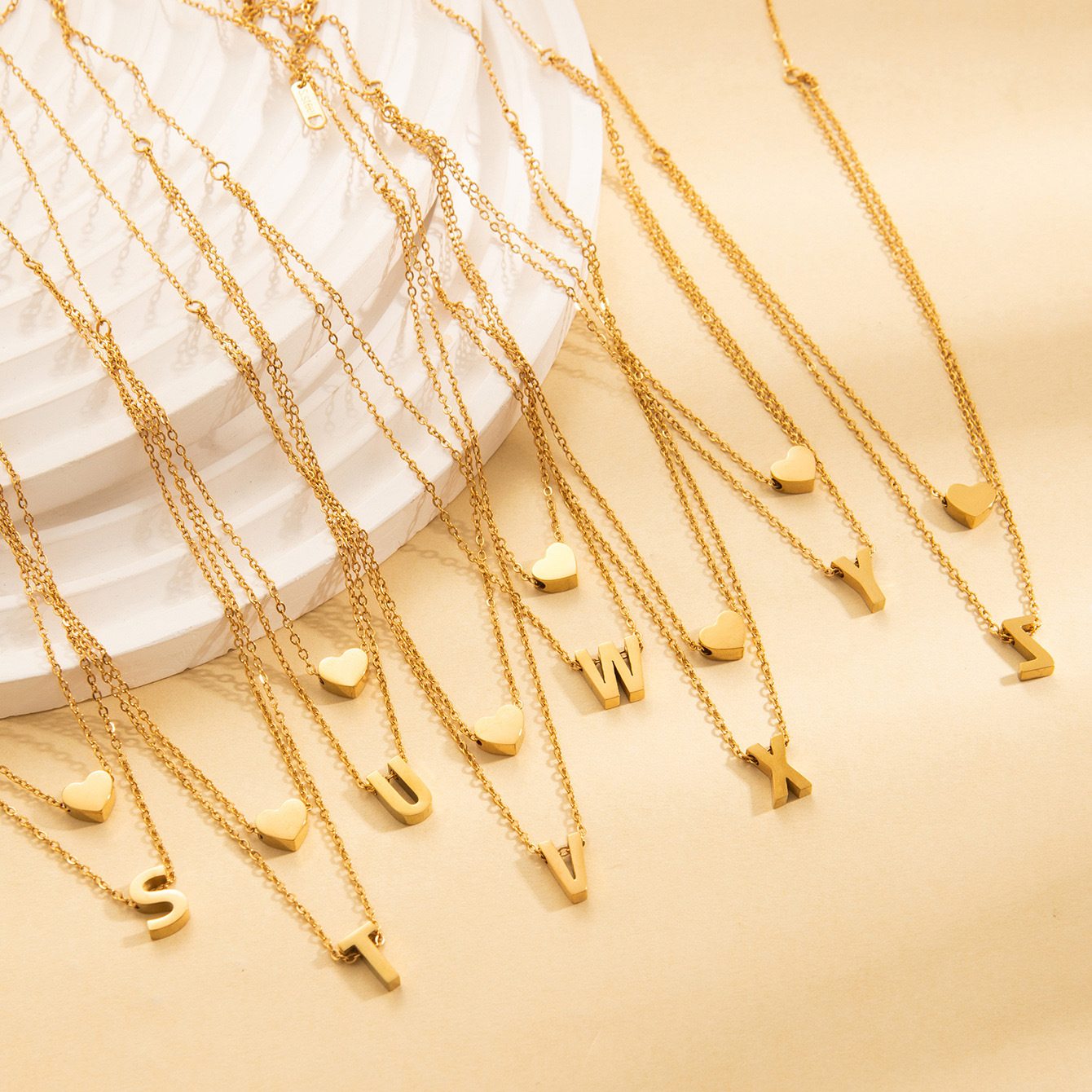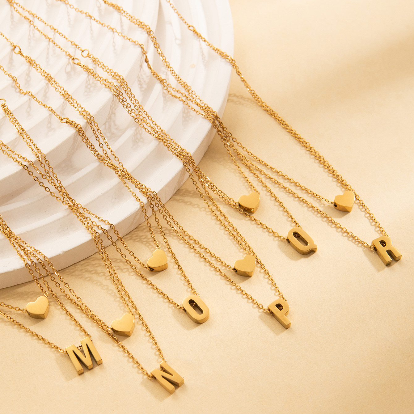 Collar de Acero Inoxidable, acero inoxidable 304, Carta del alfabeto, chapado en color dorado, Doble capa & unisexo & diferentes patrones para la opción, Vendido por UD