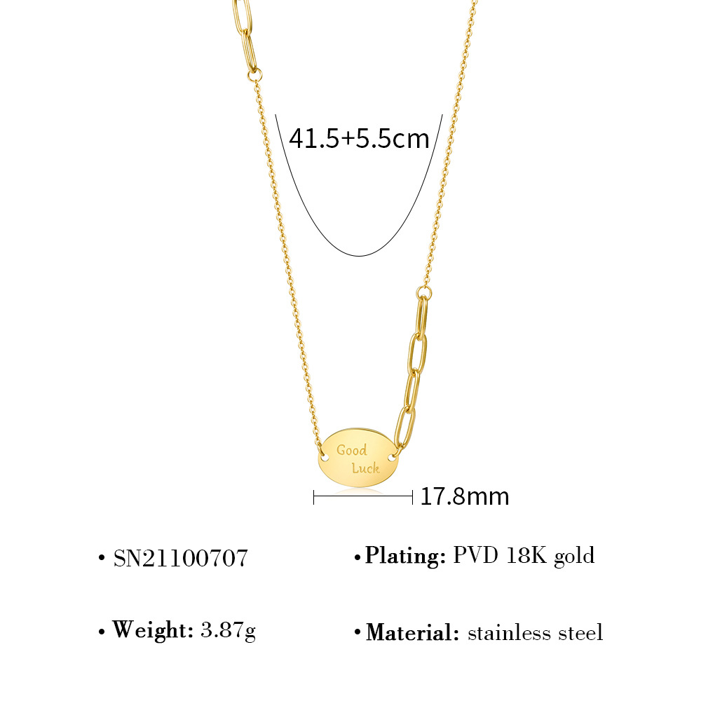 acero inoxidable collar, con 5cm extender cadena, Letra, chapado en color dorado, 35x9mm, longitud:aproximado 20 Inch, Vendido por Sarta