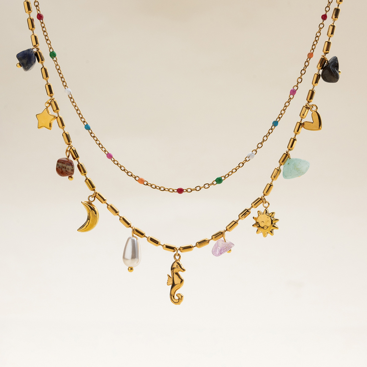 Collar de Acero Inoxidable, acero inoxidable 304, con Grava natural & Perlas plásticas, chapado en color dorado, Doble capa & Joyería, más colores para la opción, Vendido por UD