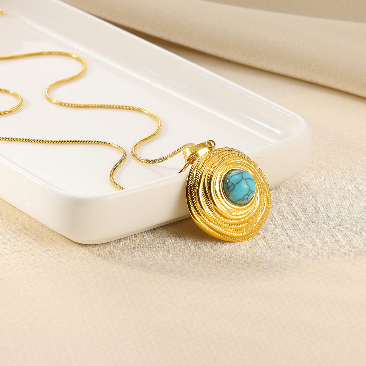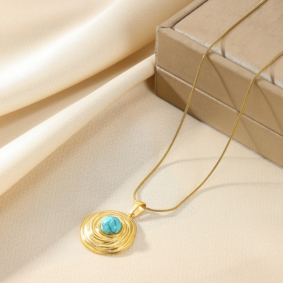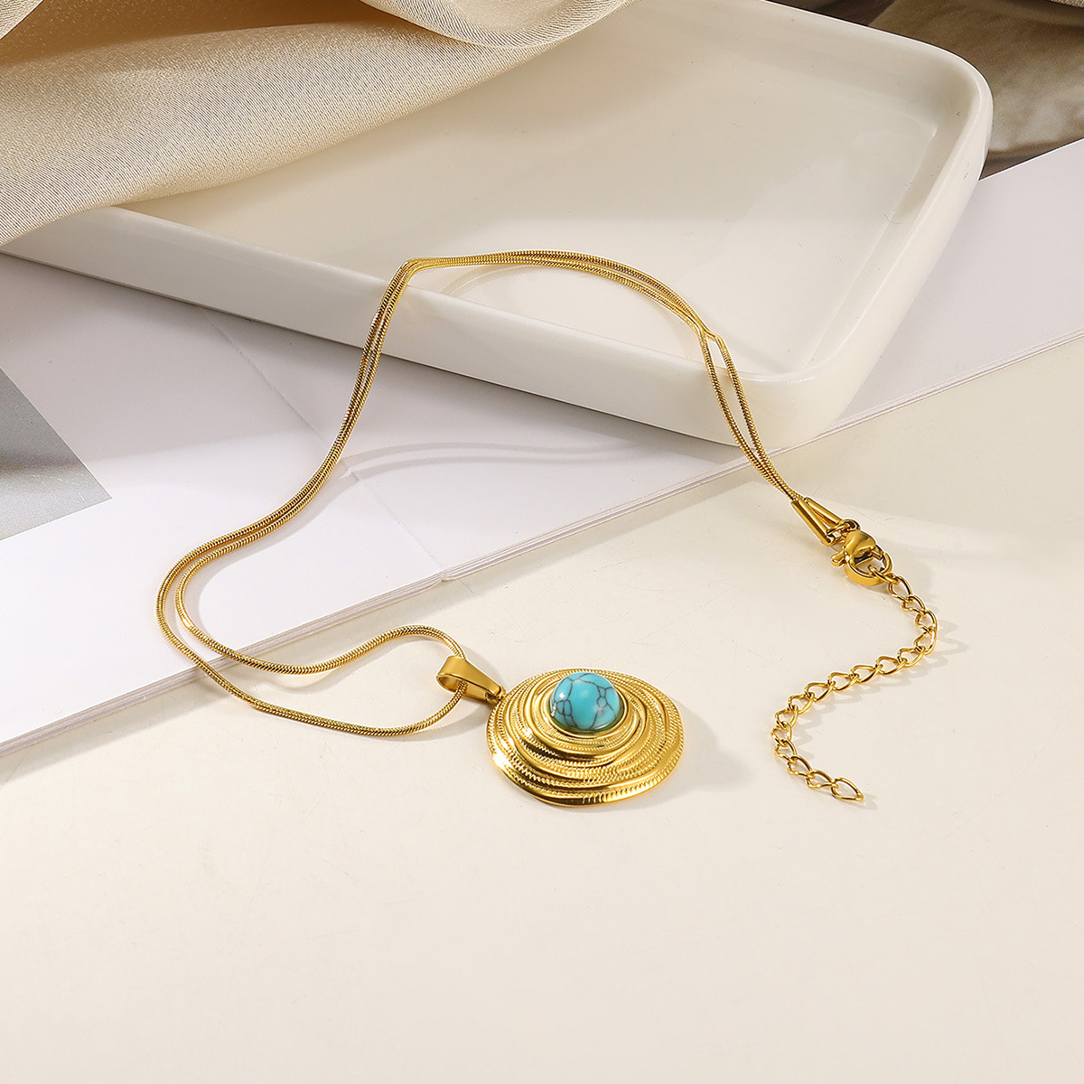 Collar de Acero Inoxidable, acero inoxidable 304, con turquesa, chapado, Joyería & diferentes estilos para la opción & para mujer, dorado, Vendido por UD