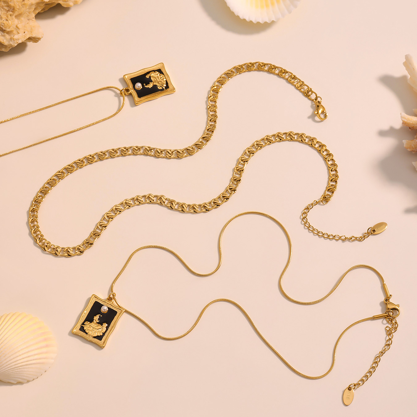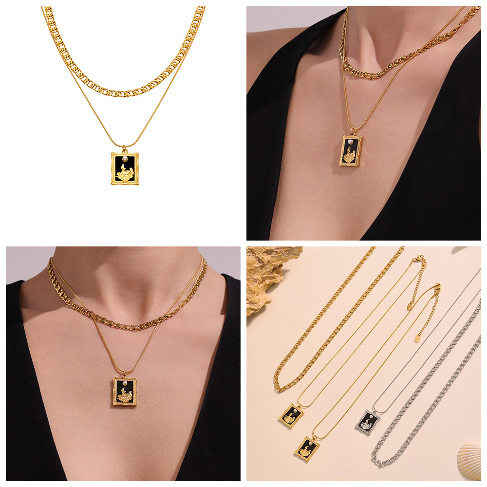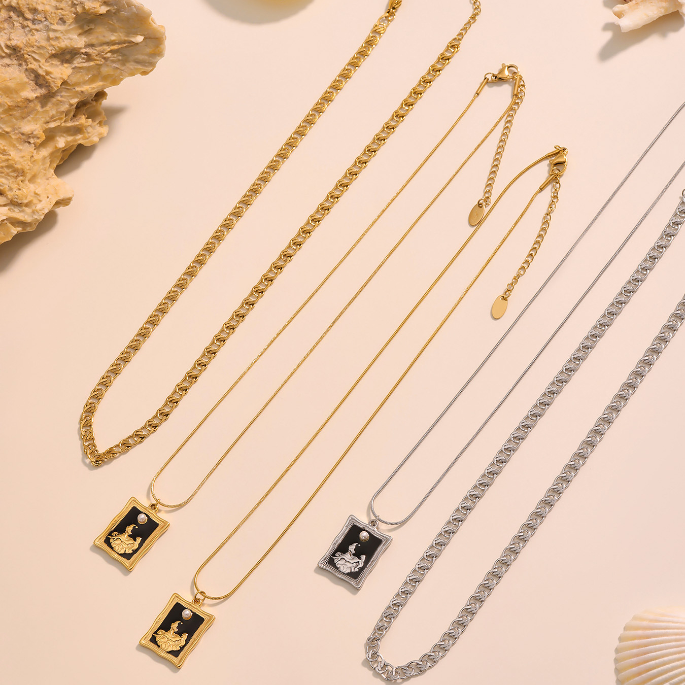 Collar de Acero Inoxidable, acero inoxidable 304, con Perlas plásticas, chapado, 2 piezas & para mujer & esmalte, más colores para la opción, Vendido por Set