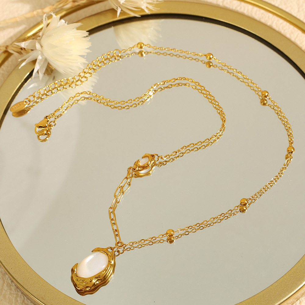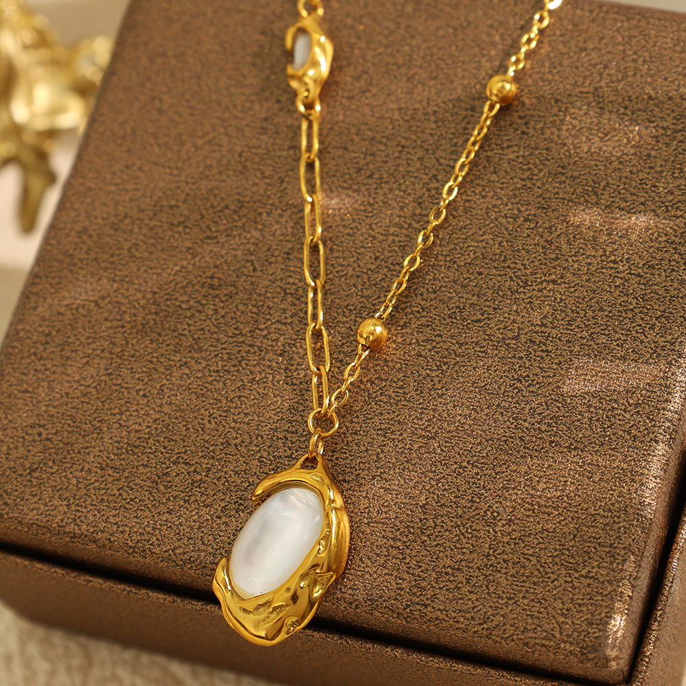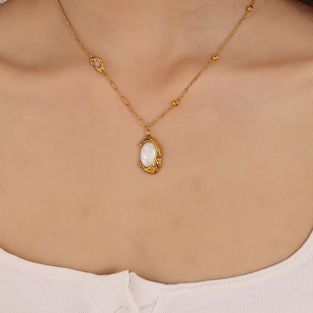 Collar de Acero Inoxidable, acero inoxidable 304, con Nácar Blanca, 18K chapado en oro, Joyería & para mujer, Vendido por UD