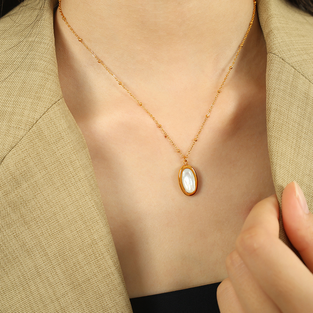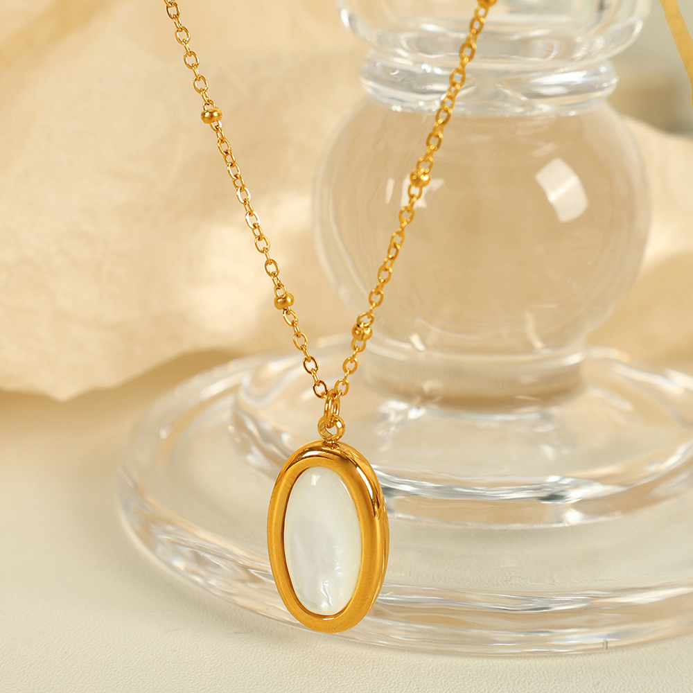 Collar de Acero Inoxidable, acero inoxidable 304, con Nácar Blanca, chapado, Joyería & para mujer, dorado, Vendido por UD