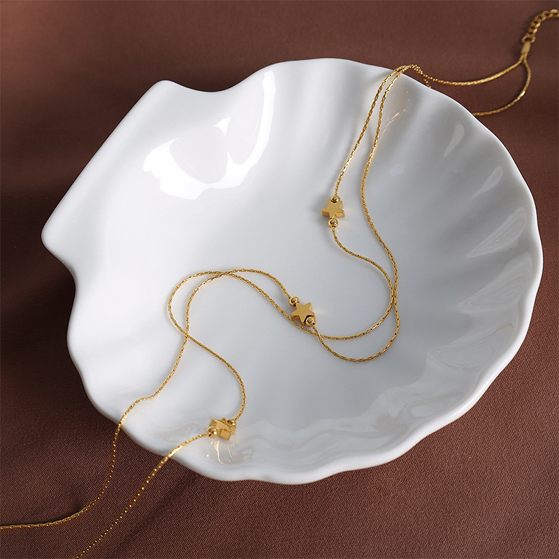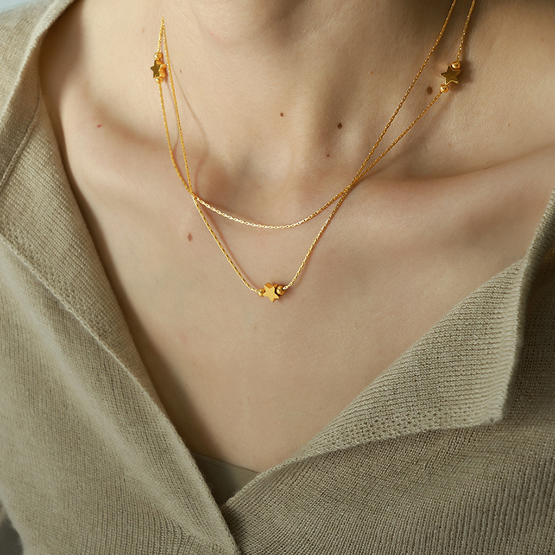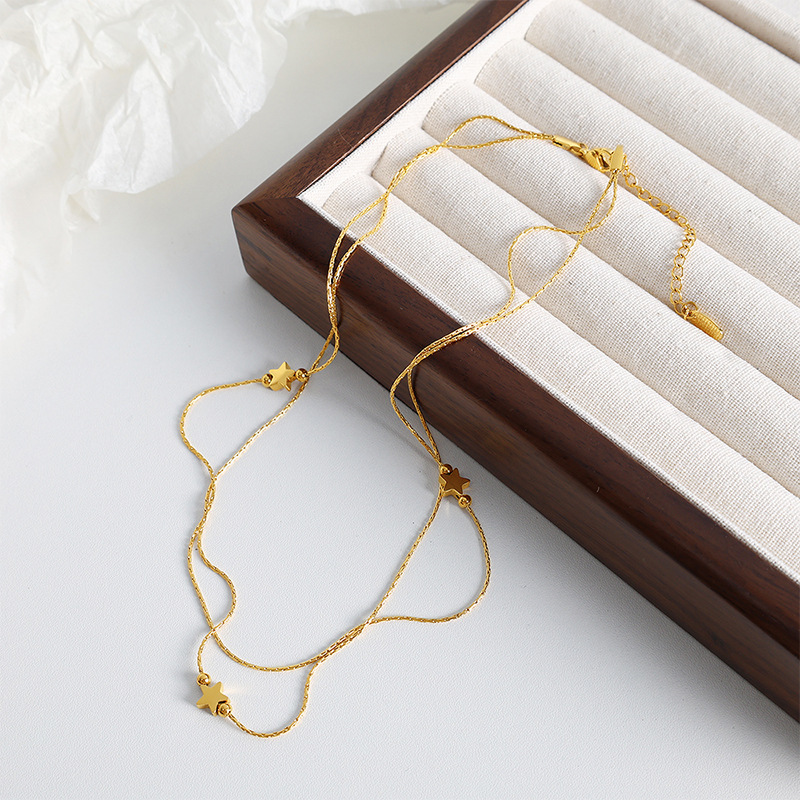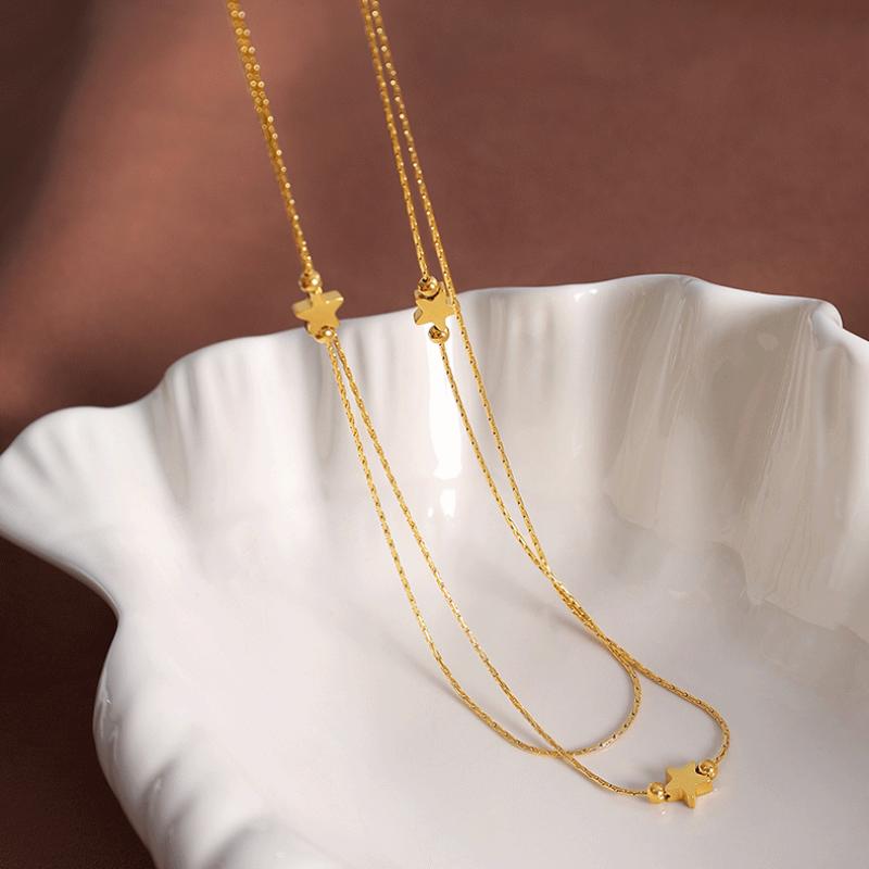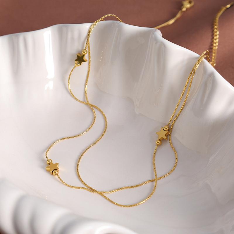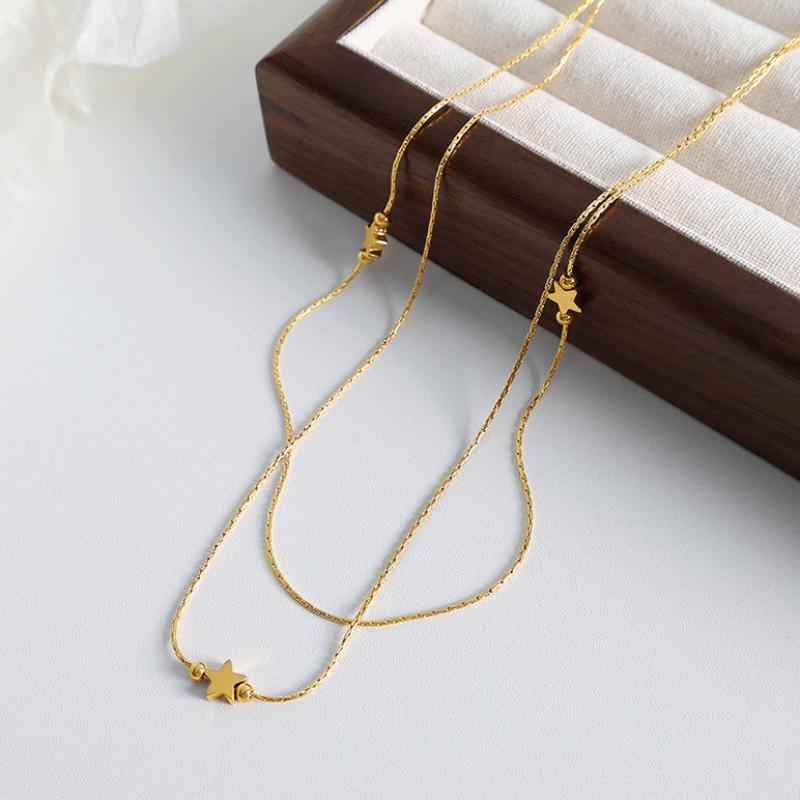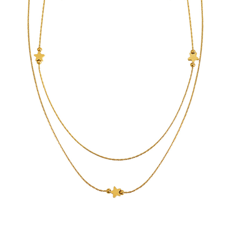 Collar de Acero Inoxidable, acero inoxidable 304, con 5cm extender cadena, chapado, Doble capa & Joyería & para mujer, dorado, longitud:40 cm, Vendido por UD