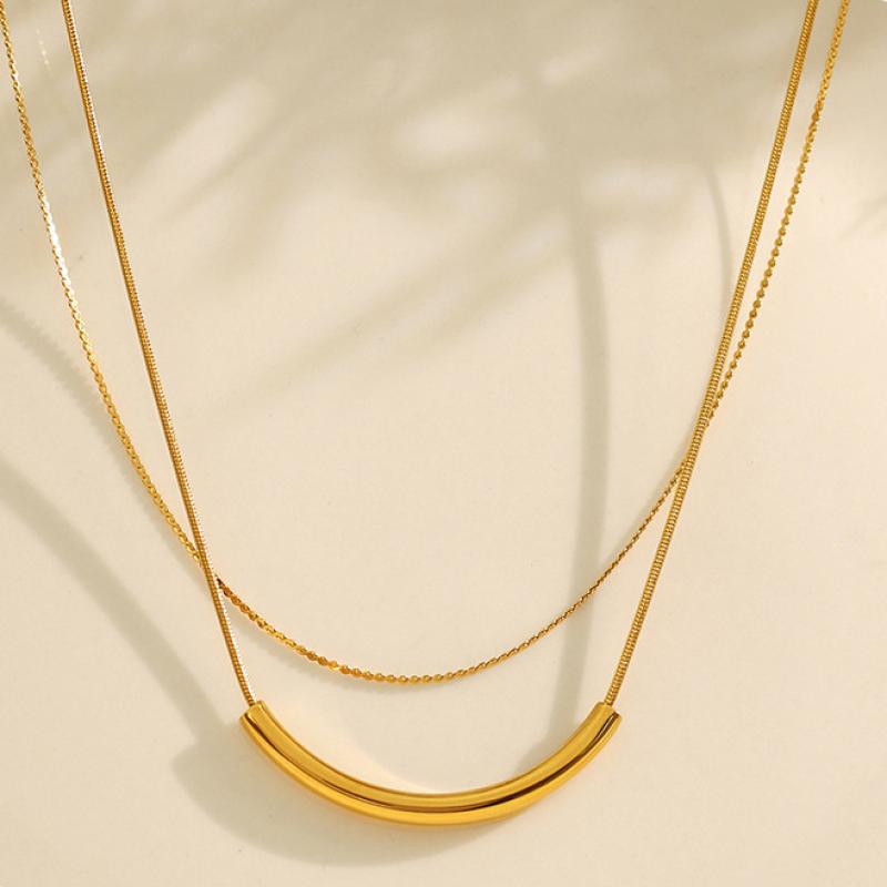 Collar de Acero Inoxidable, acero inoxidable 304, 18K chapado en oro, Doble capa & Joyería & para mujer, Vendido por UD