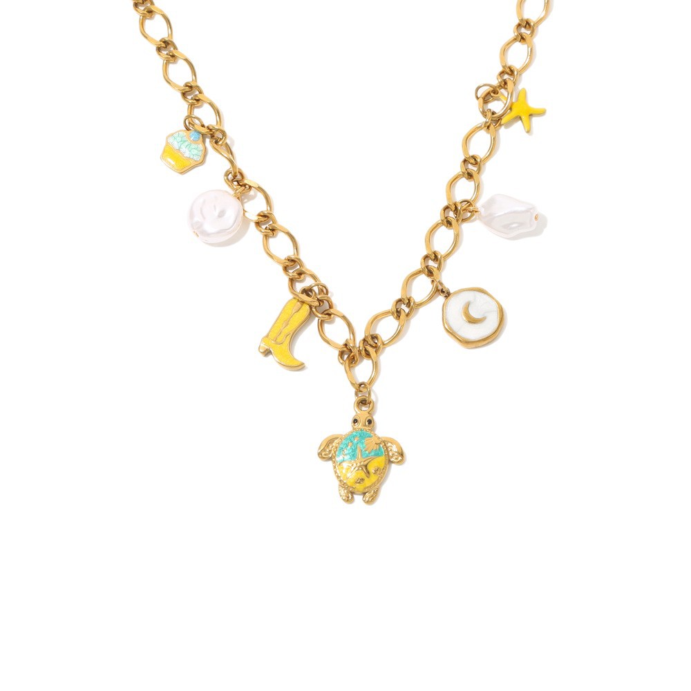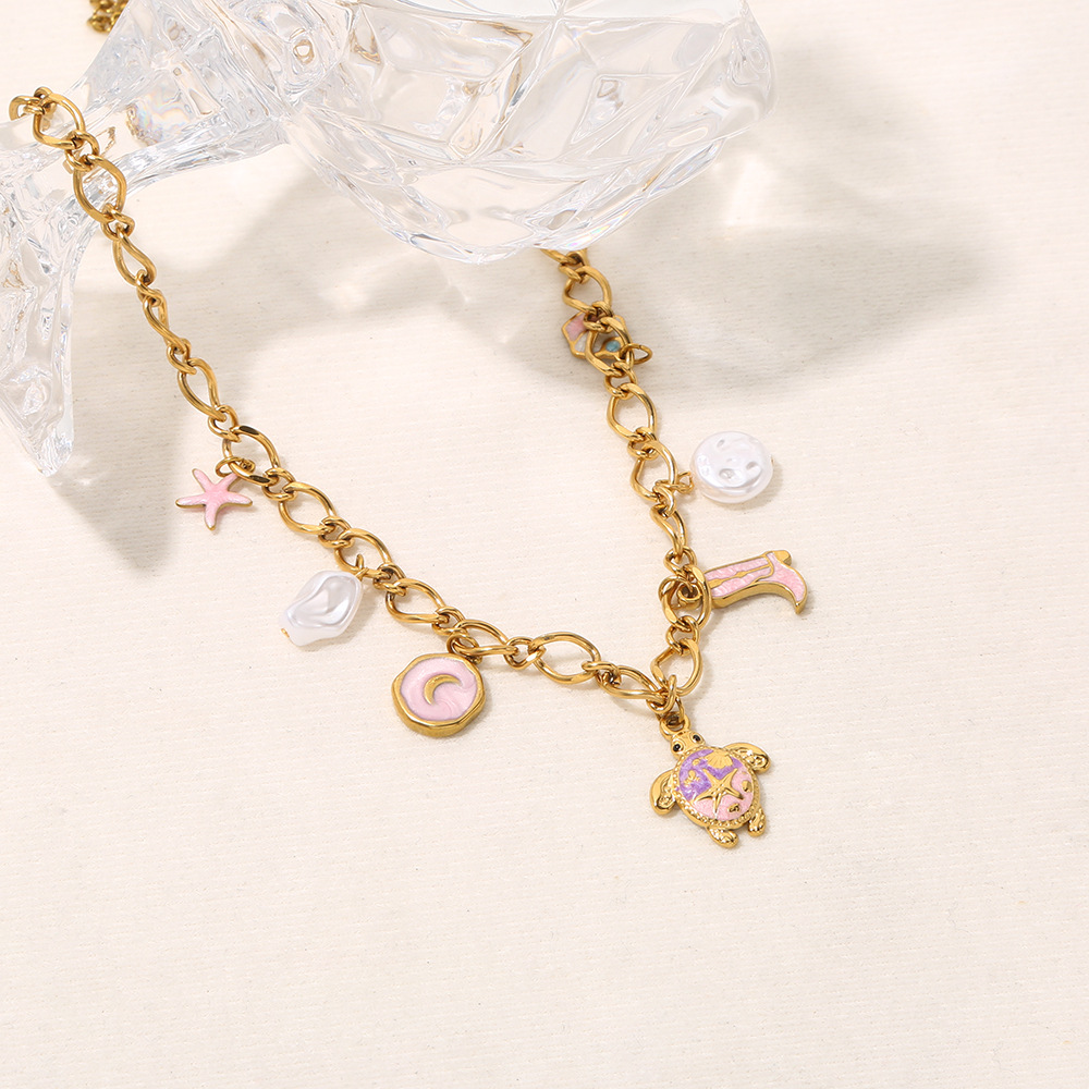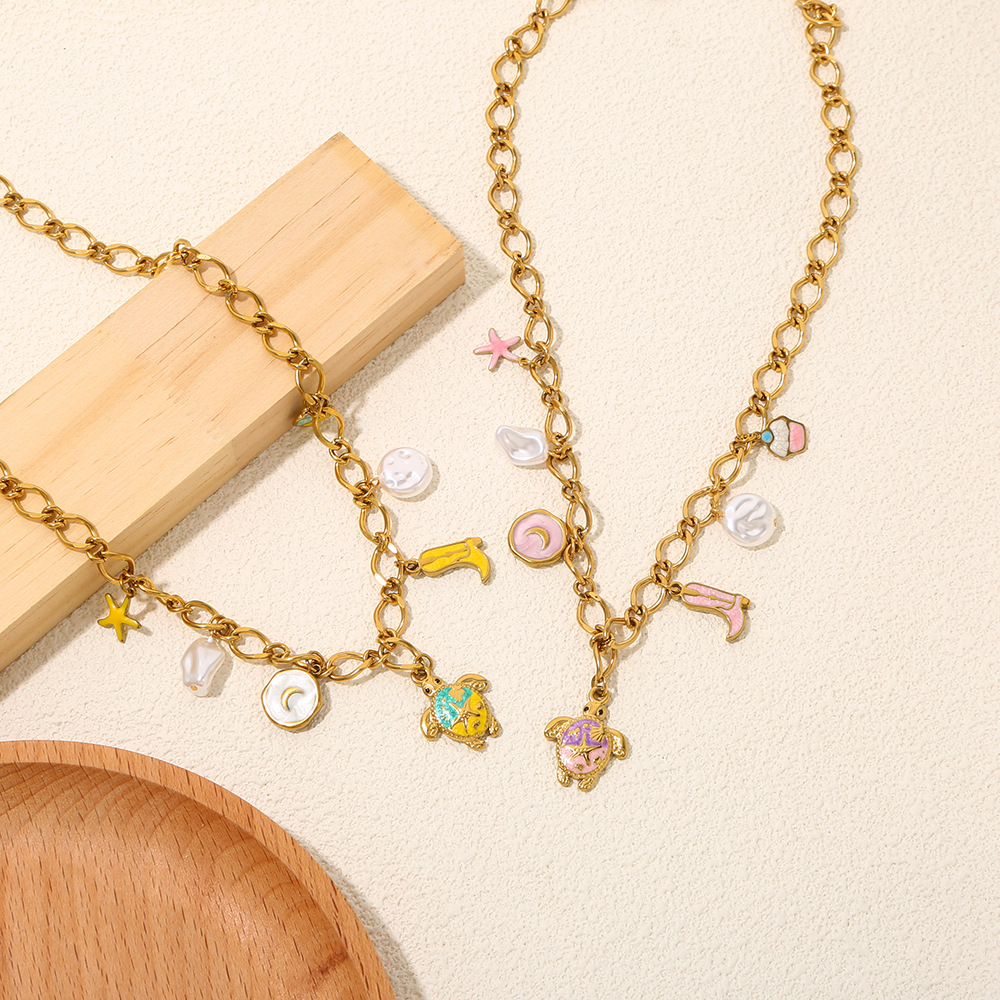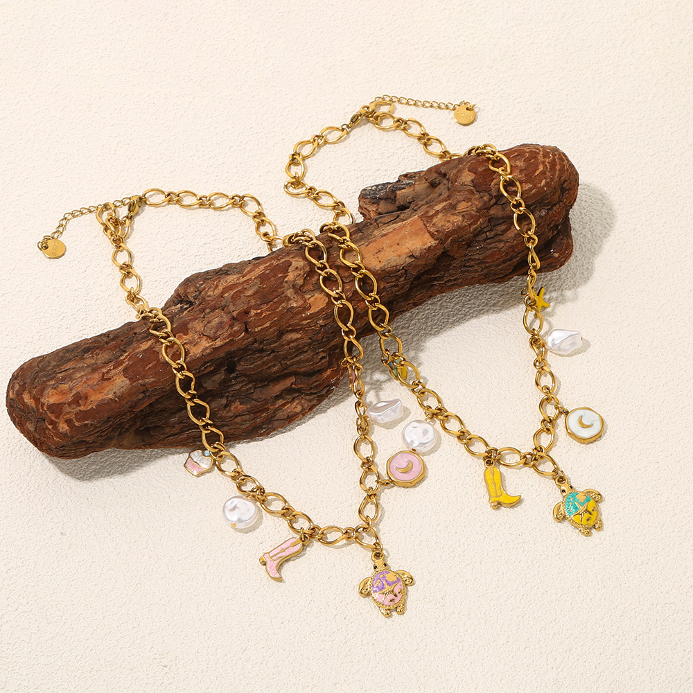 Collar de Acero Inoxidable, acero inoxidable 304, con Perlas plásticas, chapado en color dorado, Joyería & esmalte, dorado, Vendido por UD
