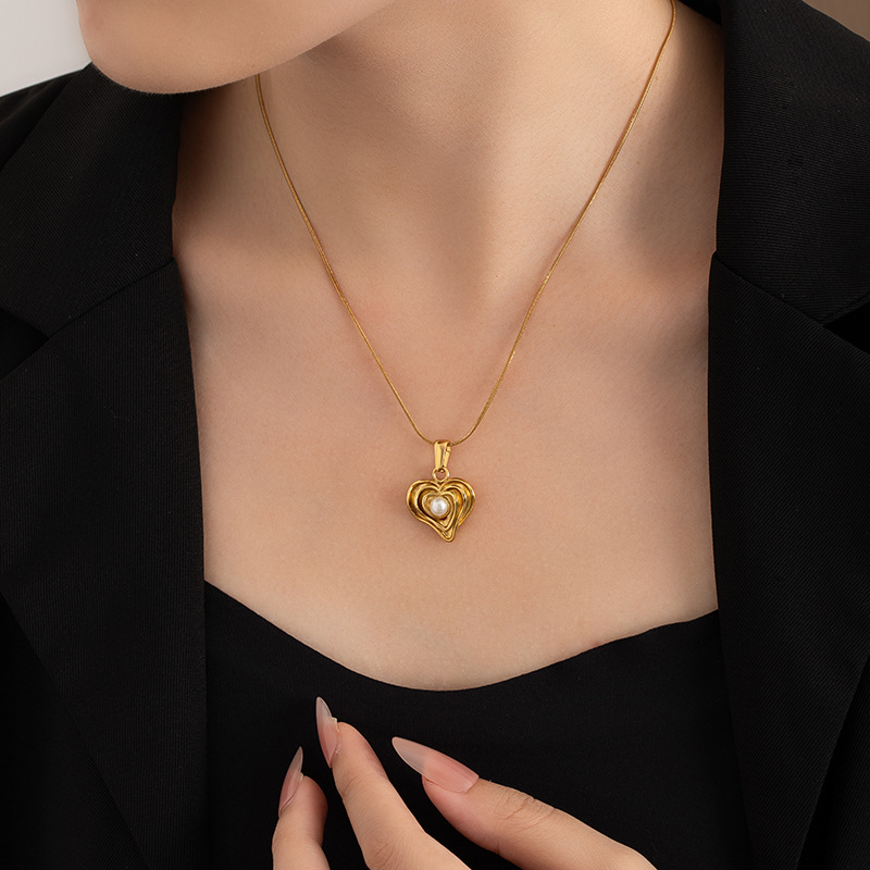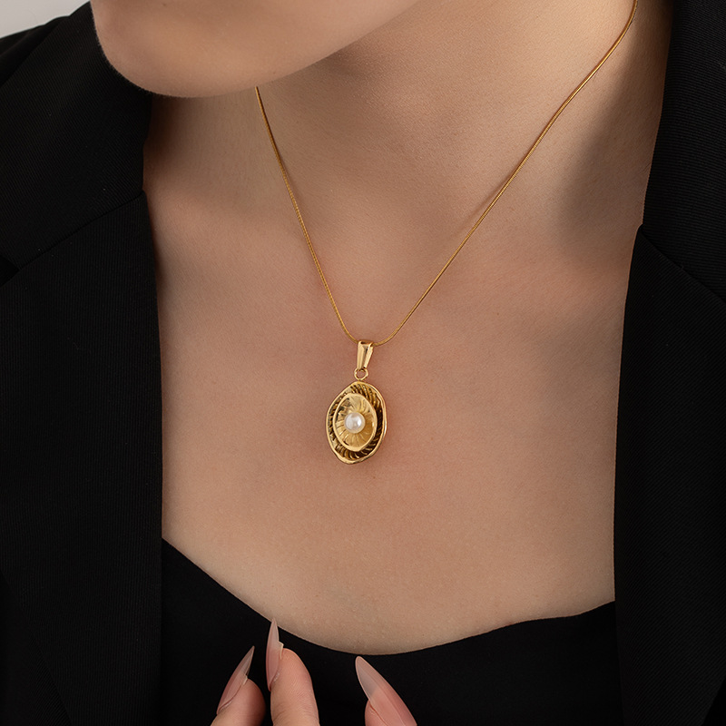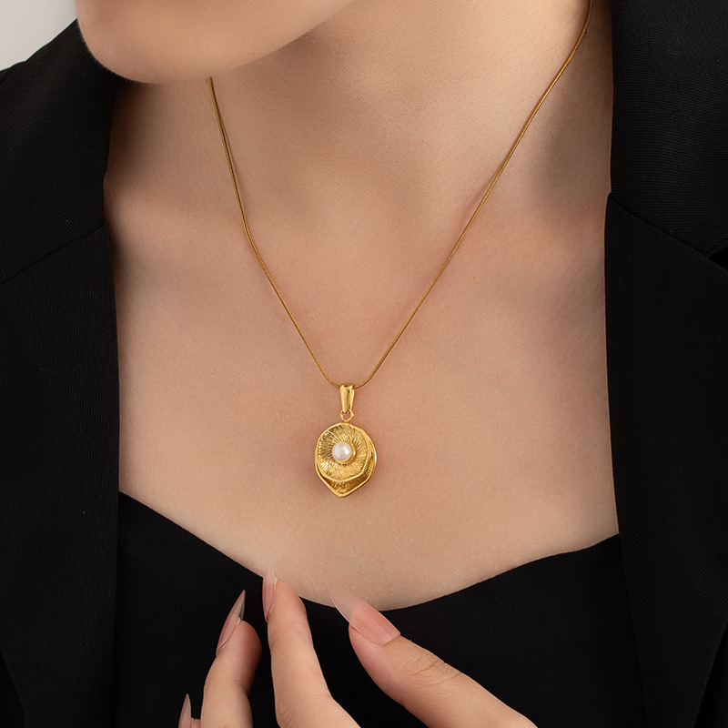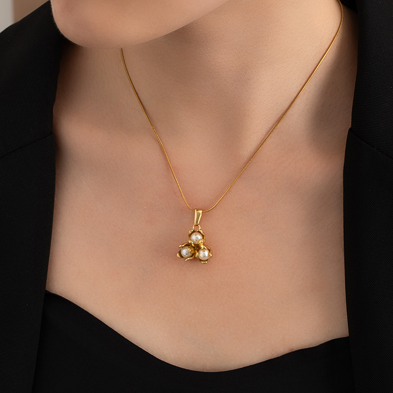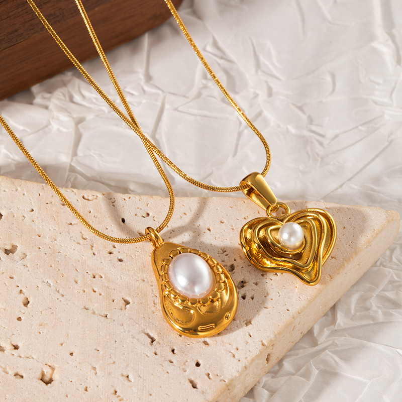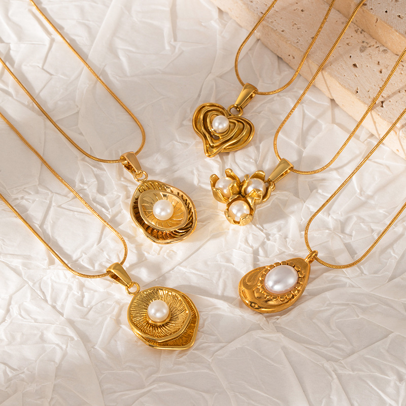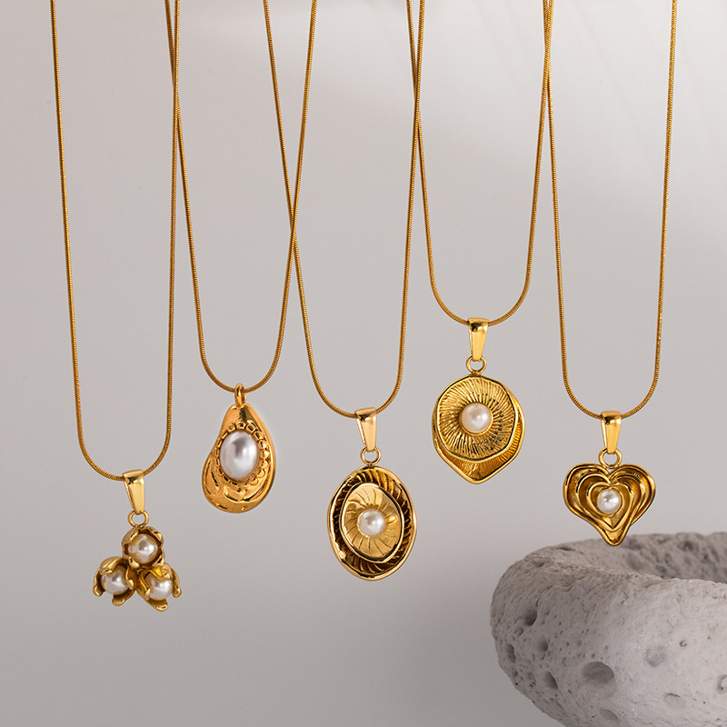 Collar de Acero Inoxidable, acero inoxidable 304, con Perlas plásticas, chapado en oro de 18 K, Joyería & diferentes estilos para la opción & para mujer, Vendido por UD