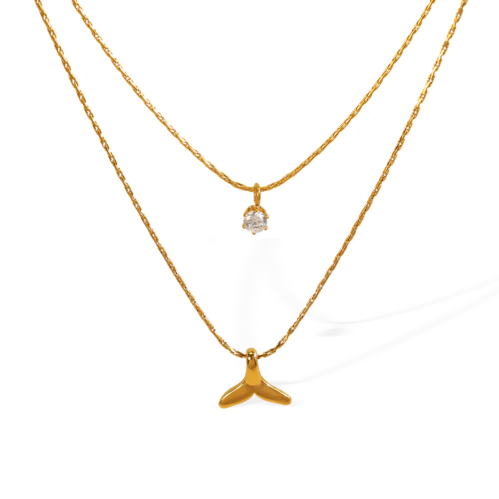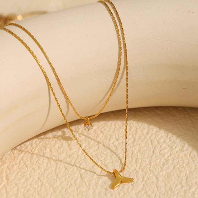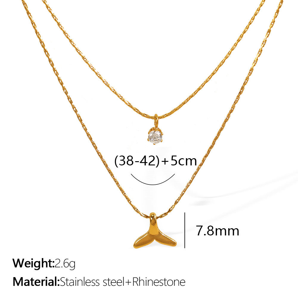 Collar de Acero Inoxidable, acero inoxidable 304, chapado, Doble capa & para mujer & con diamantes de imitación, dorado, Vendido por UD