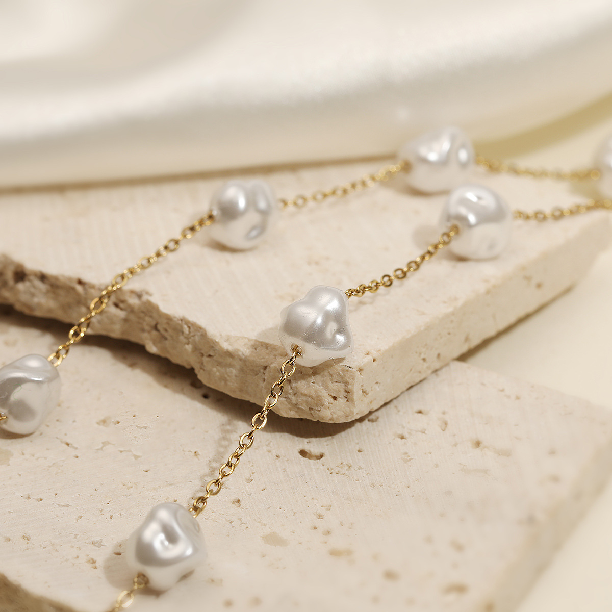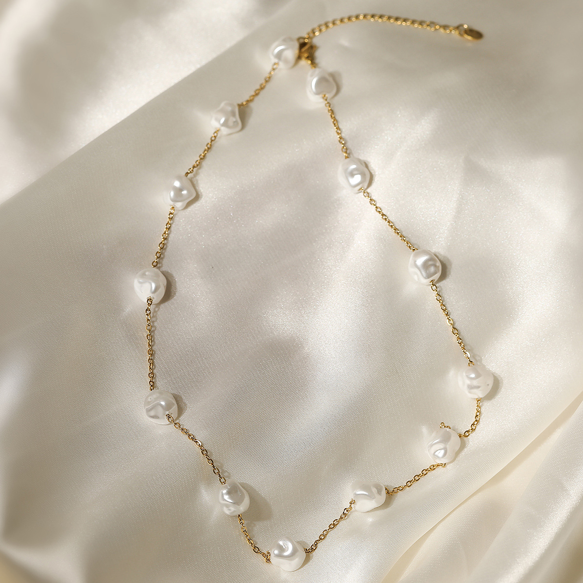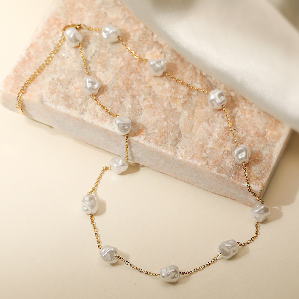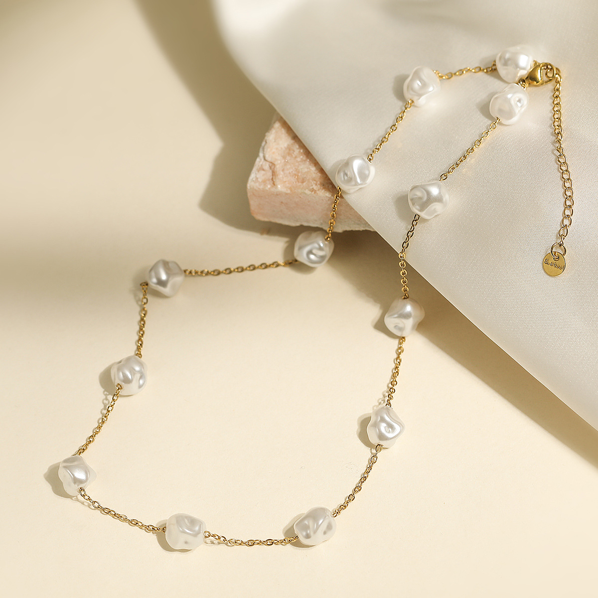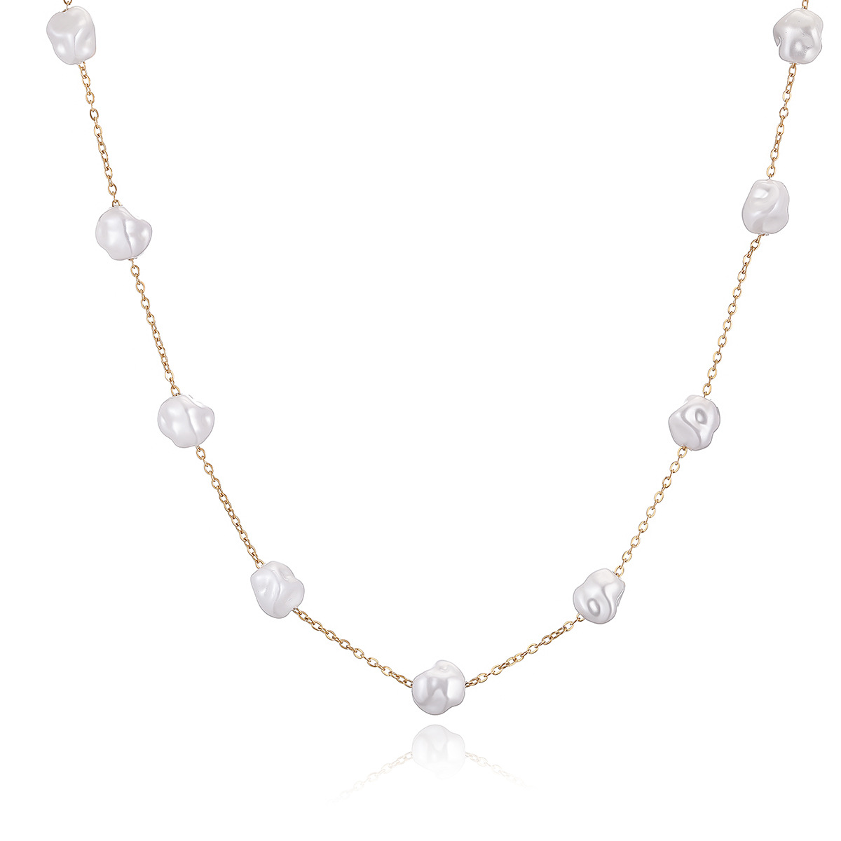 Collar de Acero Inoxidable, acero inoxidable 304, con Perlas plásticas, Joyería & para mujer, dorado, Vendido por UD