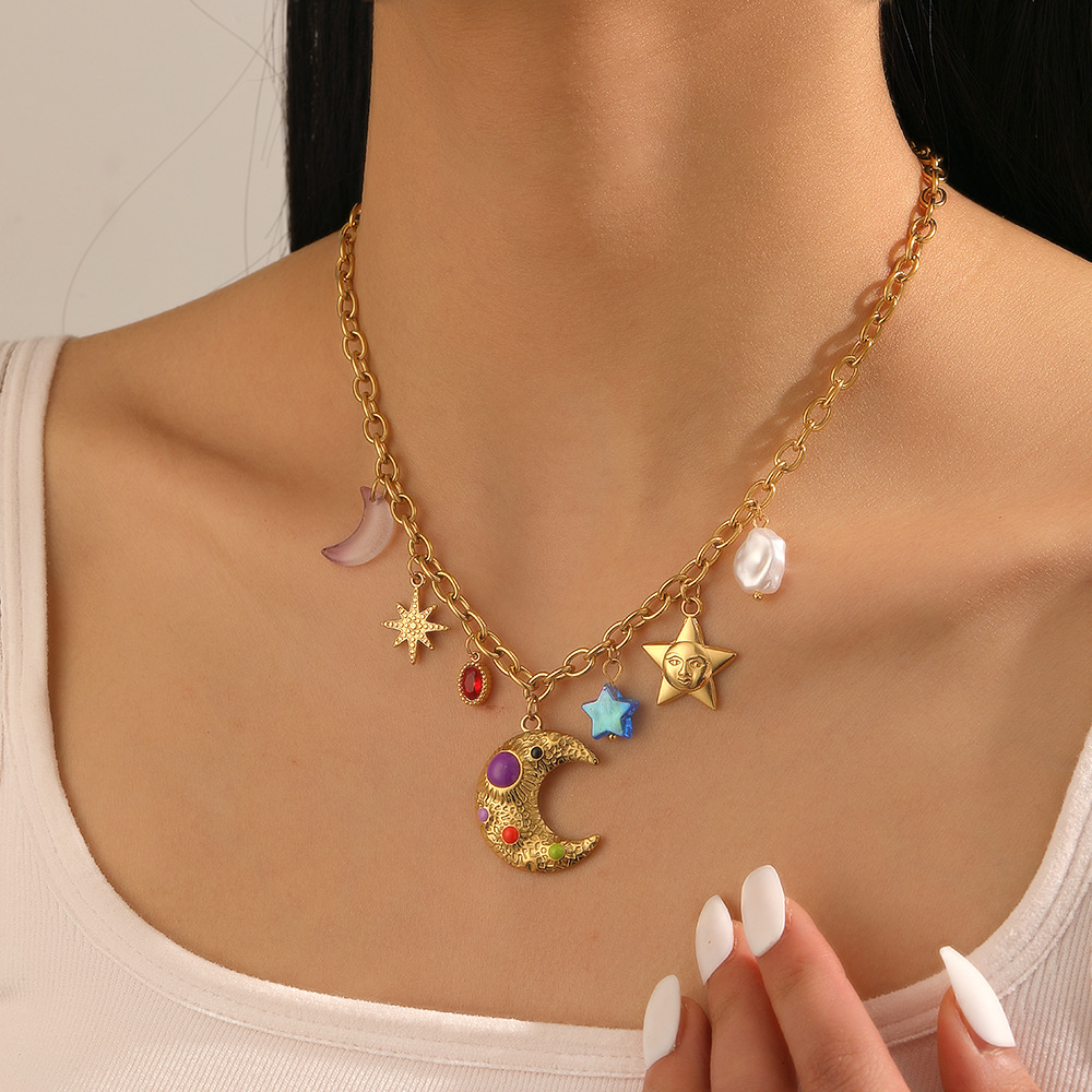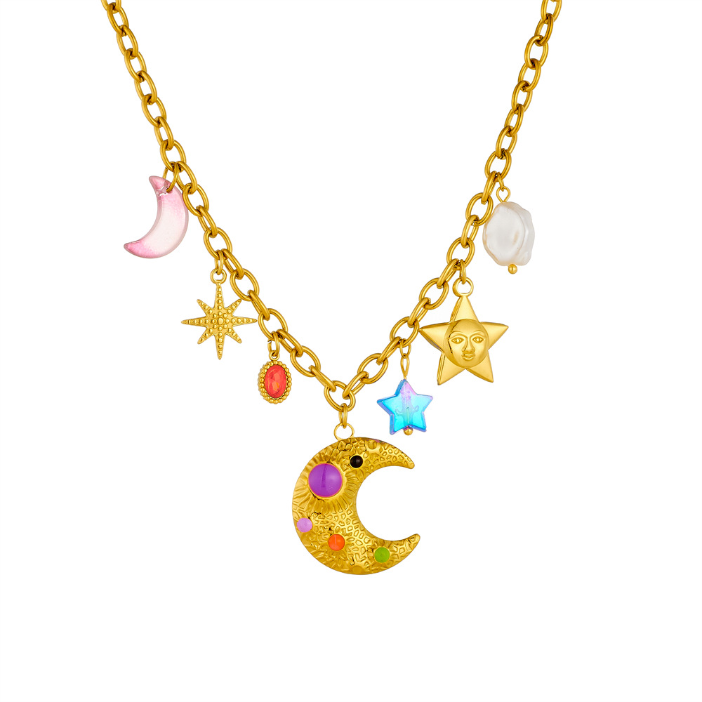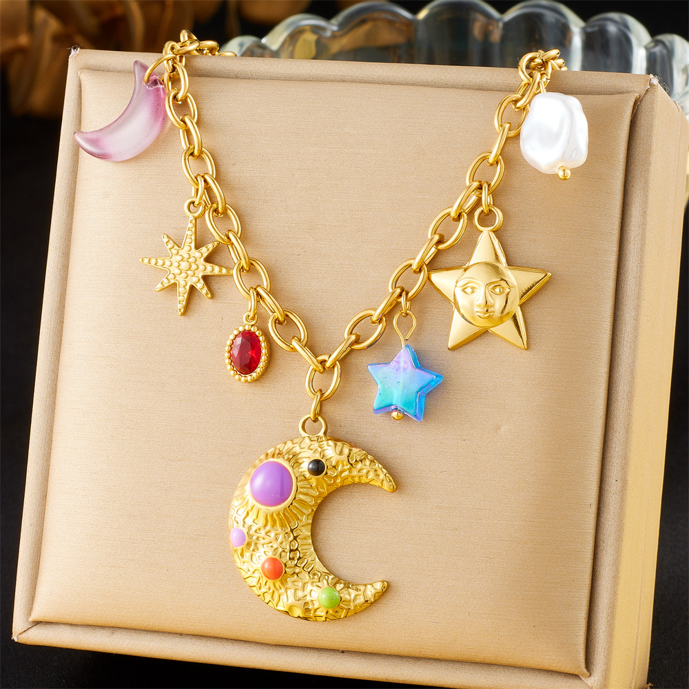 Collar de Acero Inoxidable, acero inoxidable 304, con Perlas plásticas & Acrílico, chapado, Joyería & para mujer & esmalte, dorado, Vendido por UD