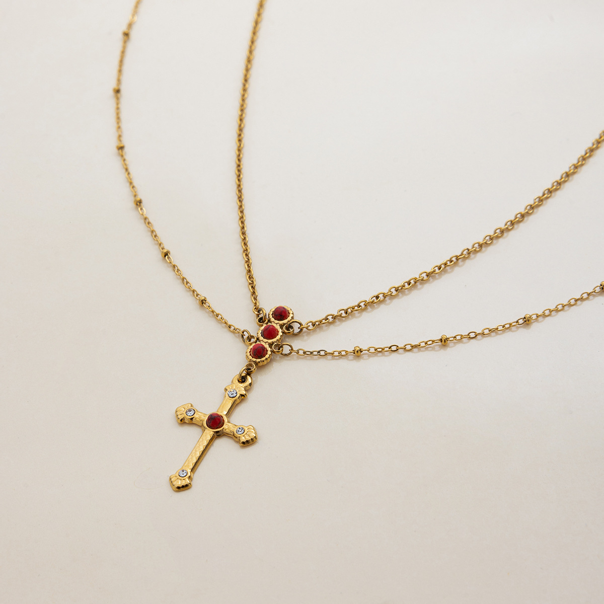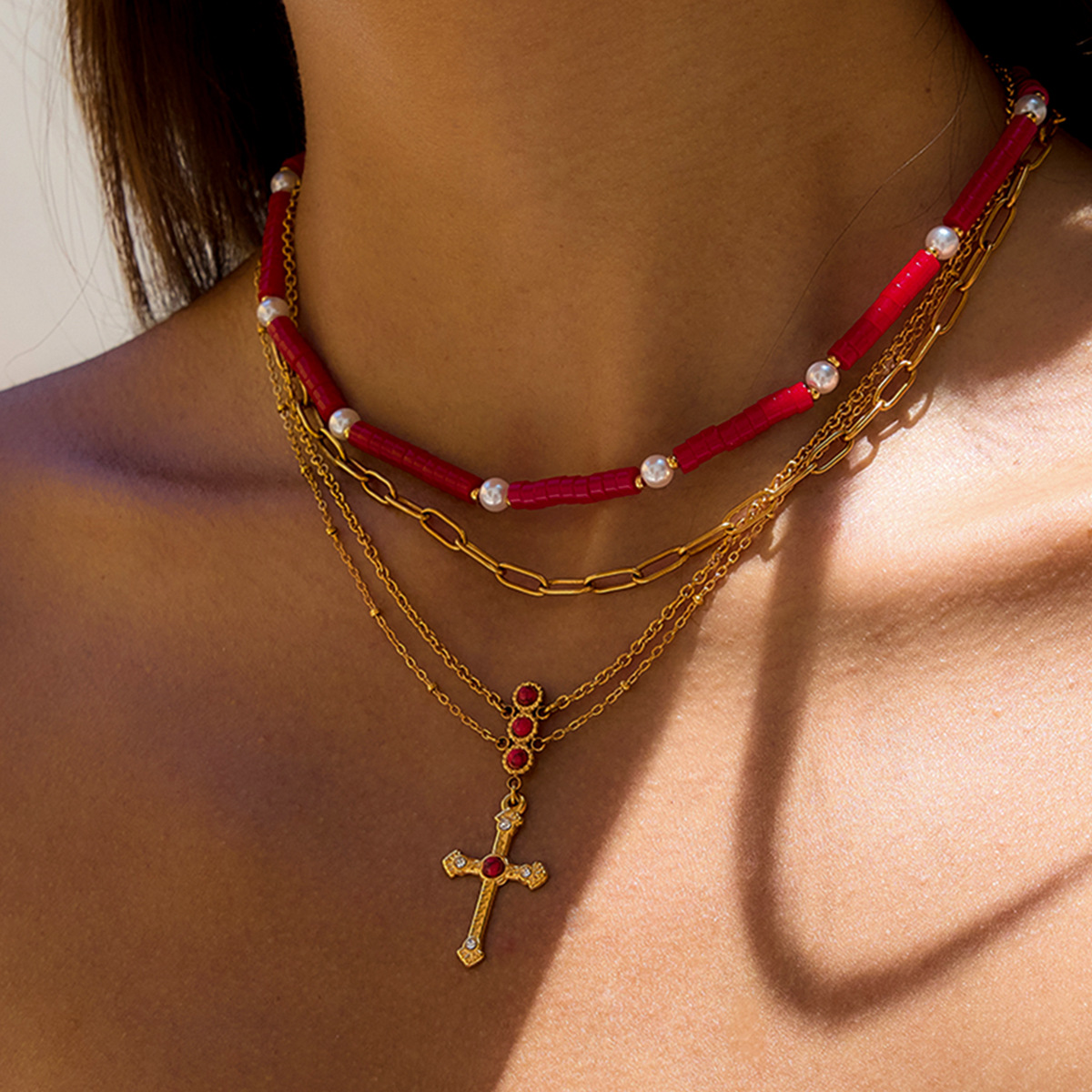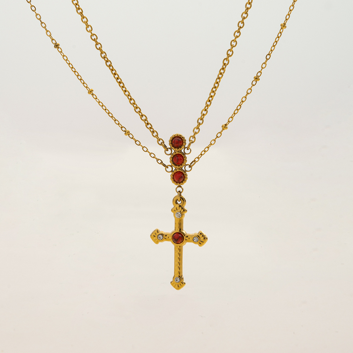 Collar de Acero Inoxidable, acero inoxidable 304, con Turquesa, chapado, Doble capa & diferentes estilos para la opción & para mujer & con diamantes de imitación, dorado, Vendido por UD