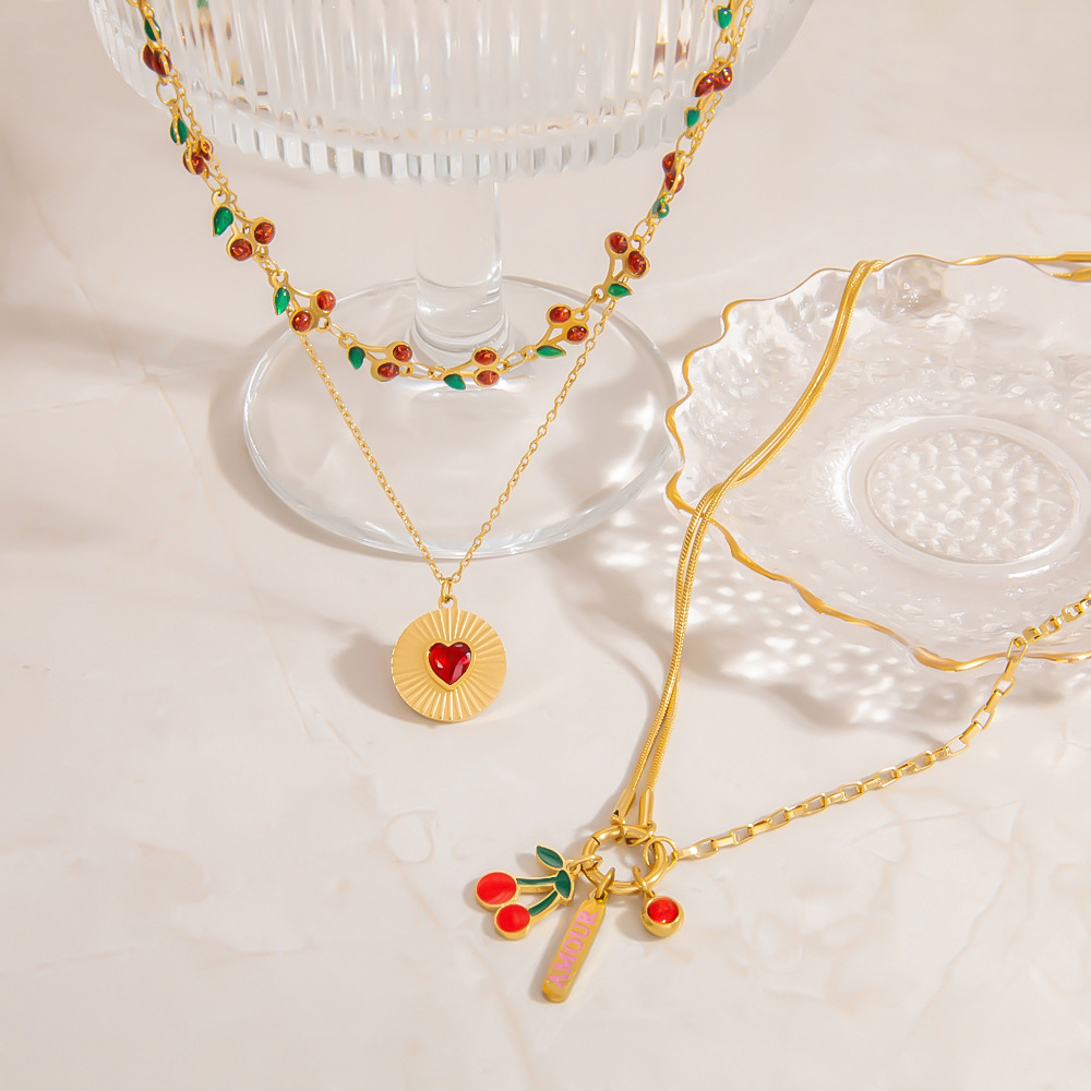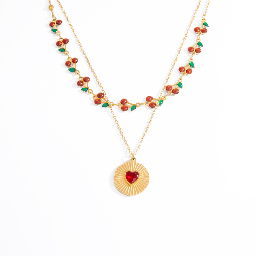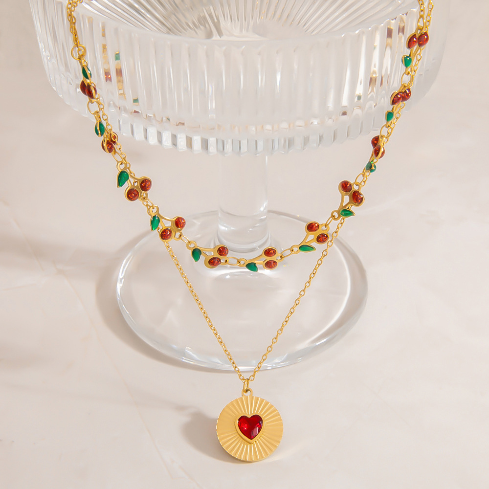 Collar de Acero Inoxidable, acero inoxidable 304, chapado en color dorado, Doble capa & Joyería & esmalte & con diamantes de imitación, más colores para la opción, Vendido por UD