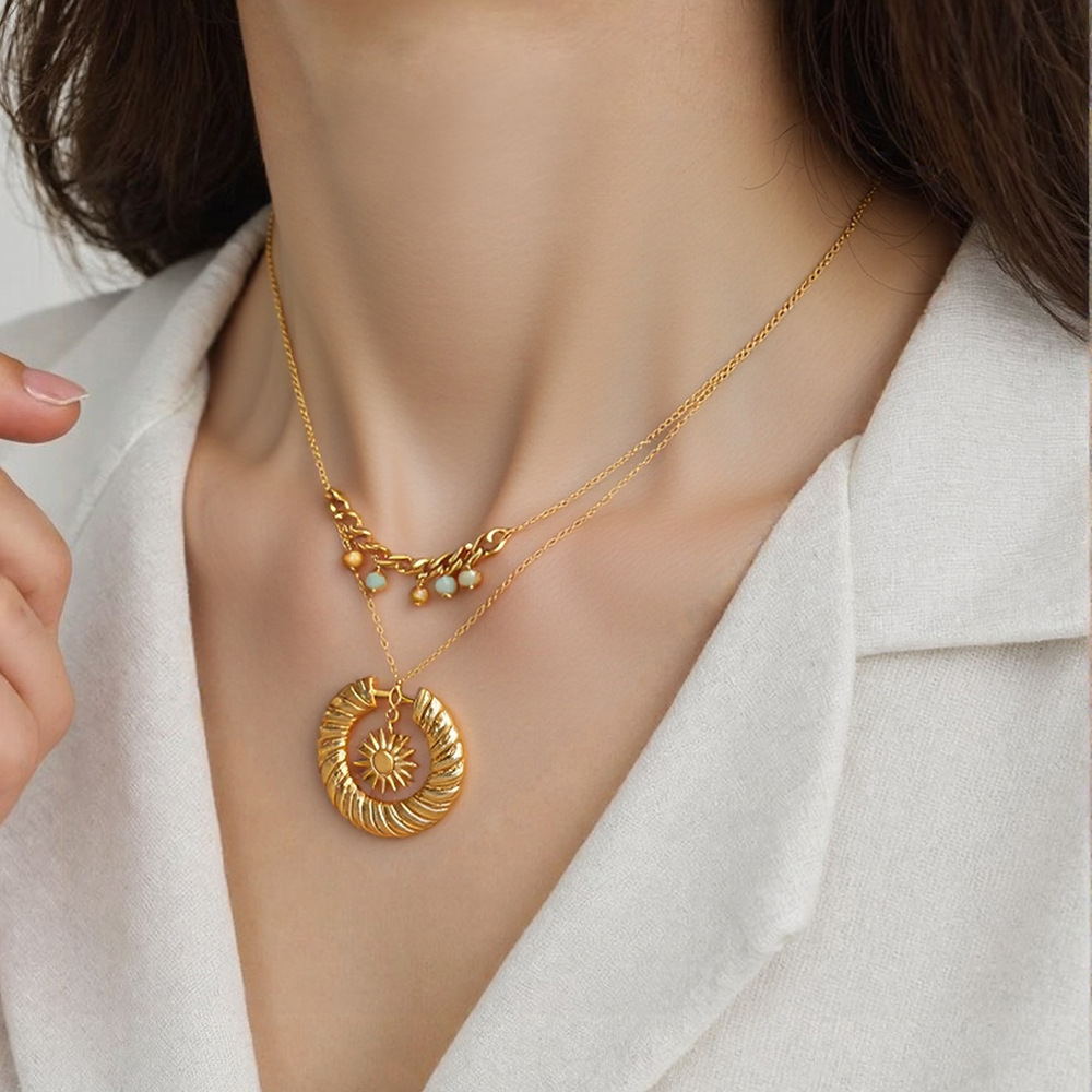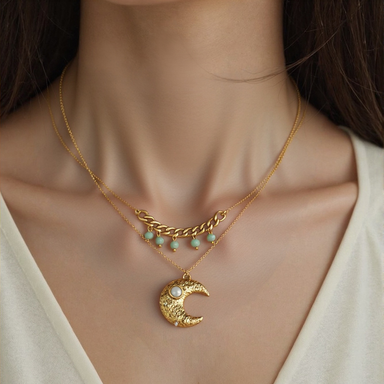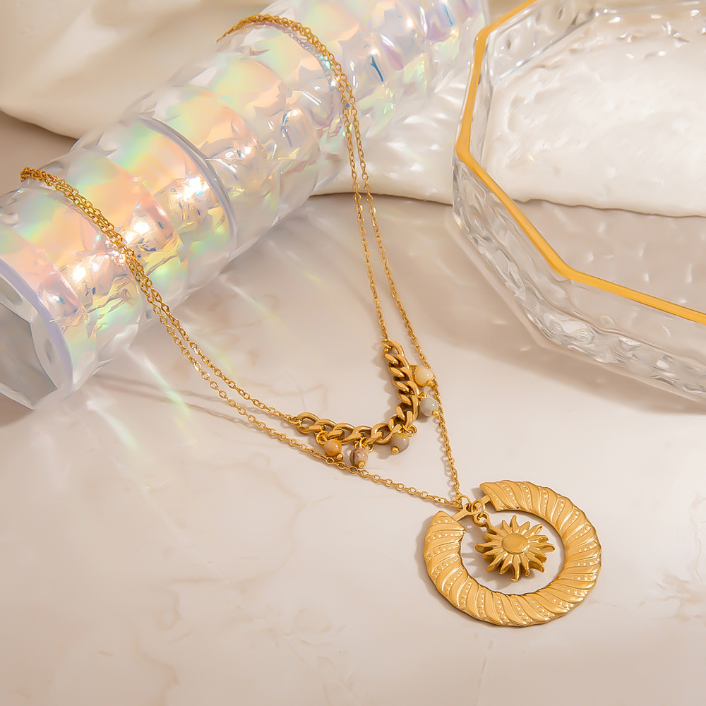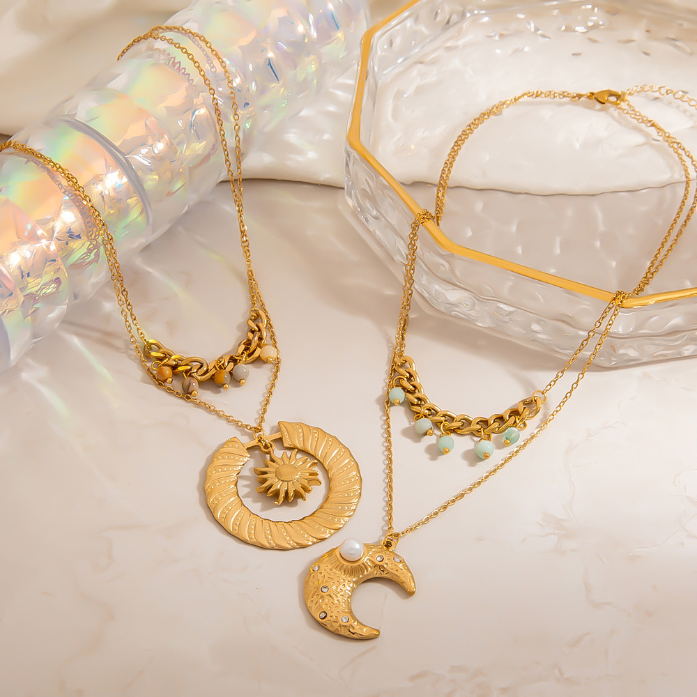 Collar de Acero Inoxidable, acero inoxidable 304, con Piedra natural & Perlas de plástico ABS, chapado en color dorado, Doble capa & Joyería & con diamantes de imitación, más colores para la opción, Vendido por UD