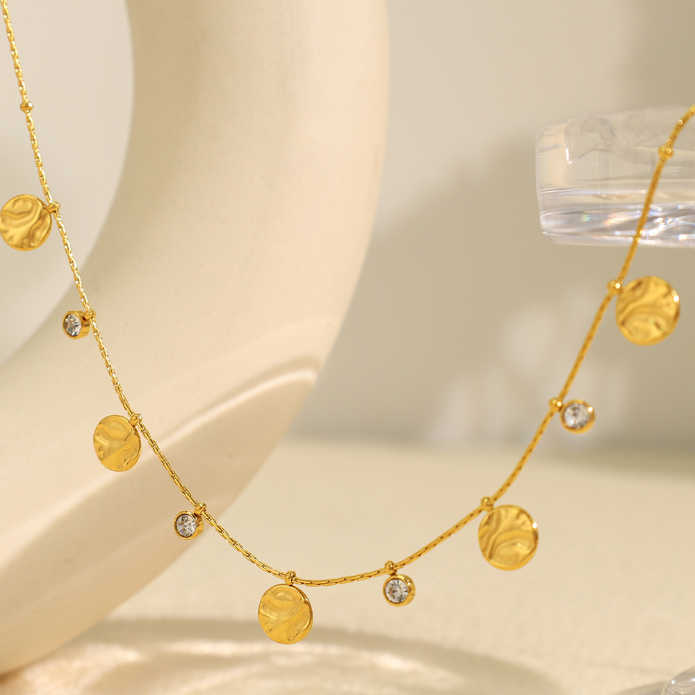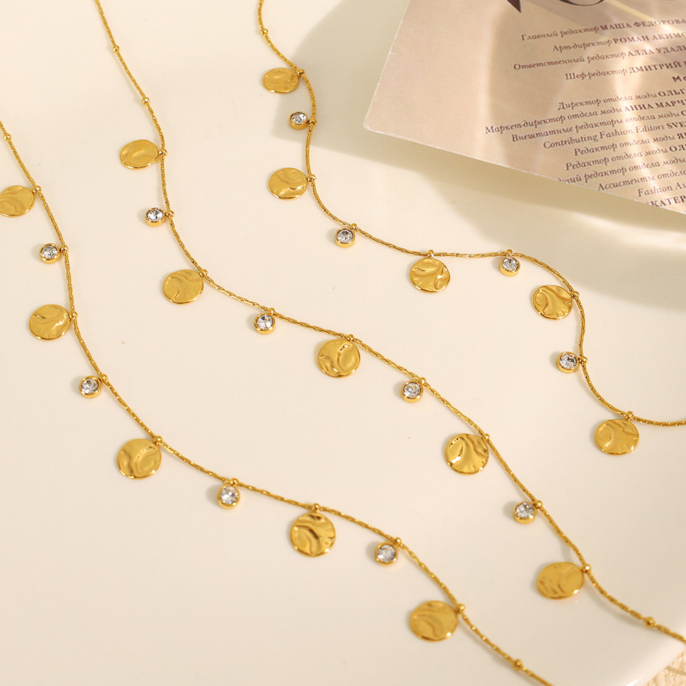 Collar de Acero Inoxidable, acero inoxidable 304, chapado, Joyería & para mujer & con diamantes de imitación, dorado, Vendido por UD