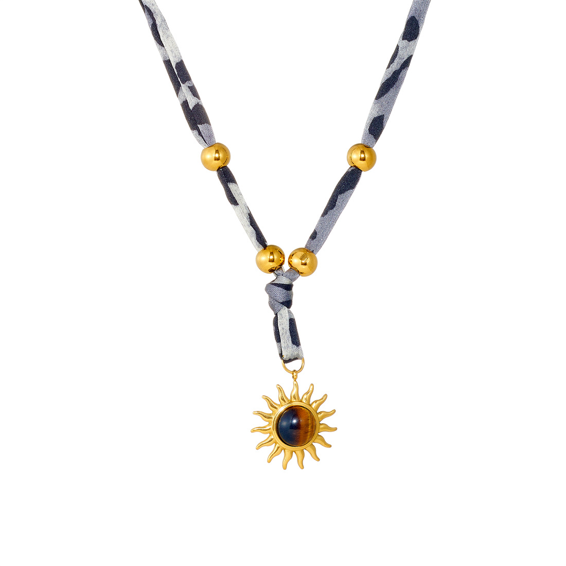 Collar de Acero Inoxidable, acero inoxidable 304, con Ojo de tigre & Algodón, chapado en color dorado, Joyería & para mujer, Vendido por UD