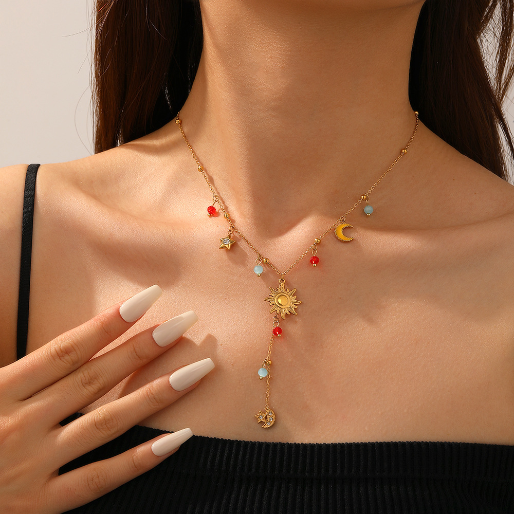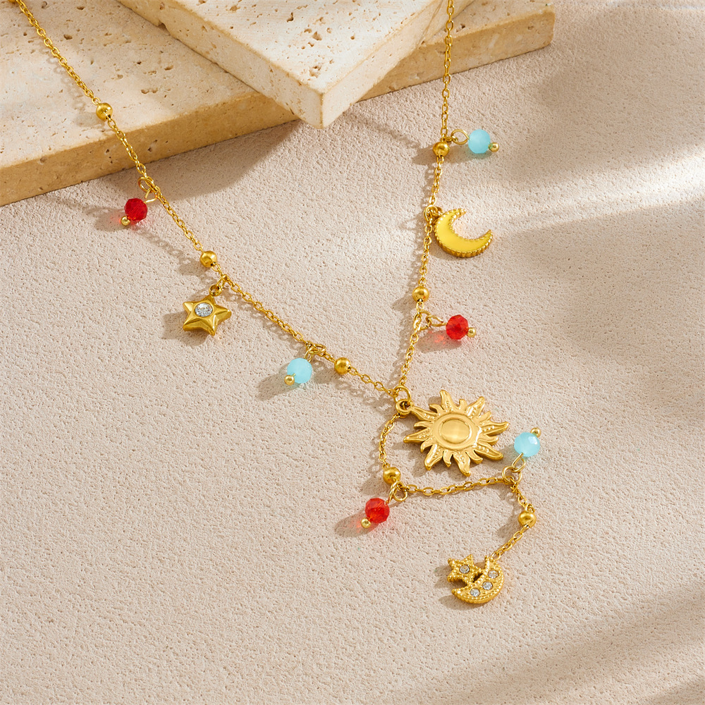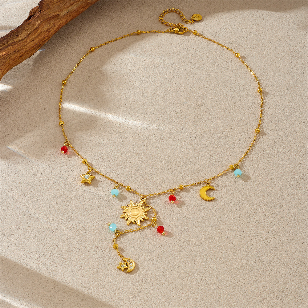 Collar de Acero Inoxidable, acero inoxidable 304, con Vidrio, chapado, Joyería & para mujer & con diamantes de imitación, dorado, Vendido por UD