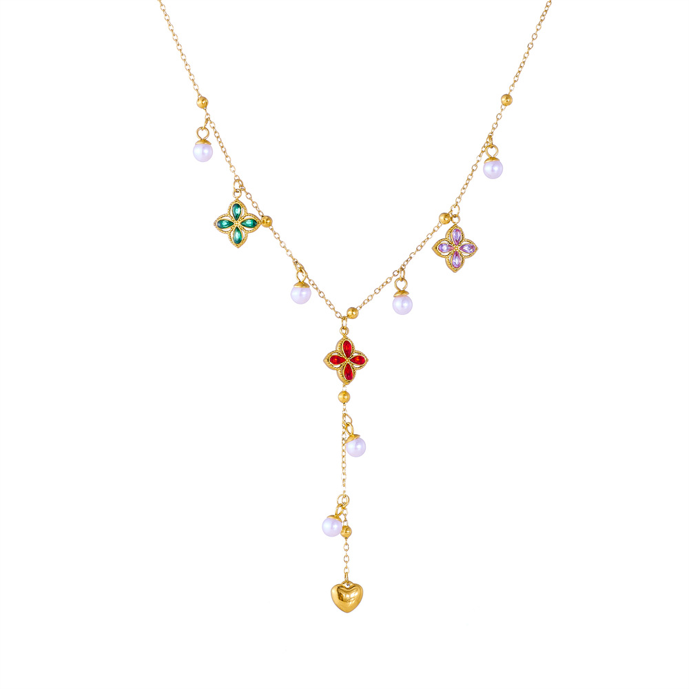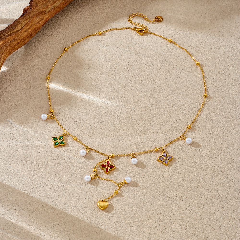 Collar de Acero Inoxidable, acero inoxidable 304, con Perlas plásticas, chapado, Joyería & para mujer & con diamantes de imitación, dorado, Vendido por UD