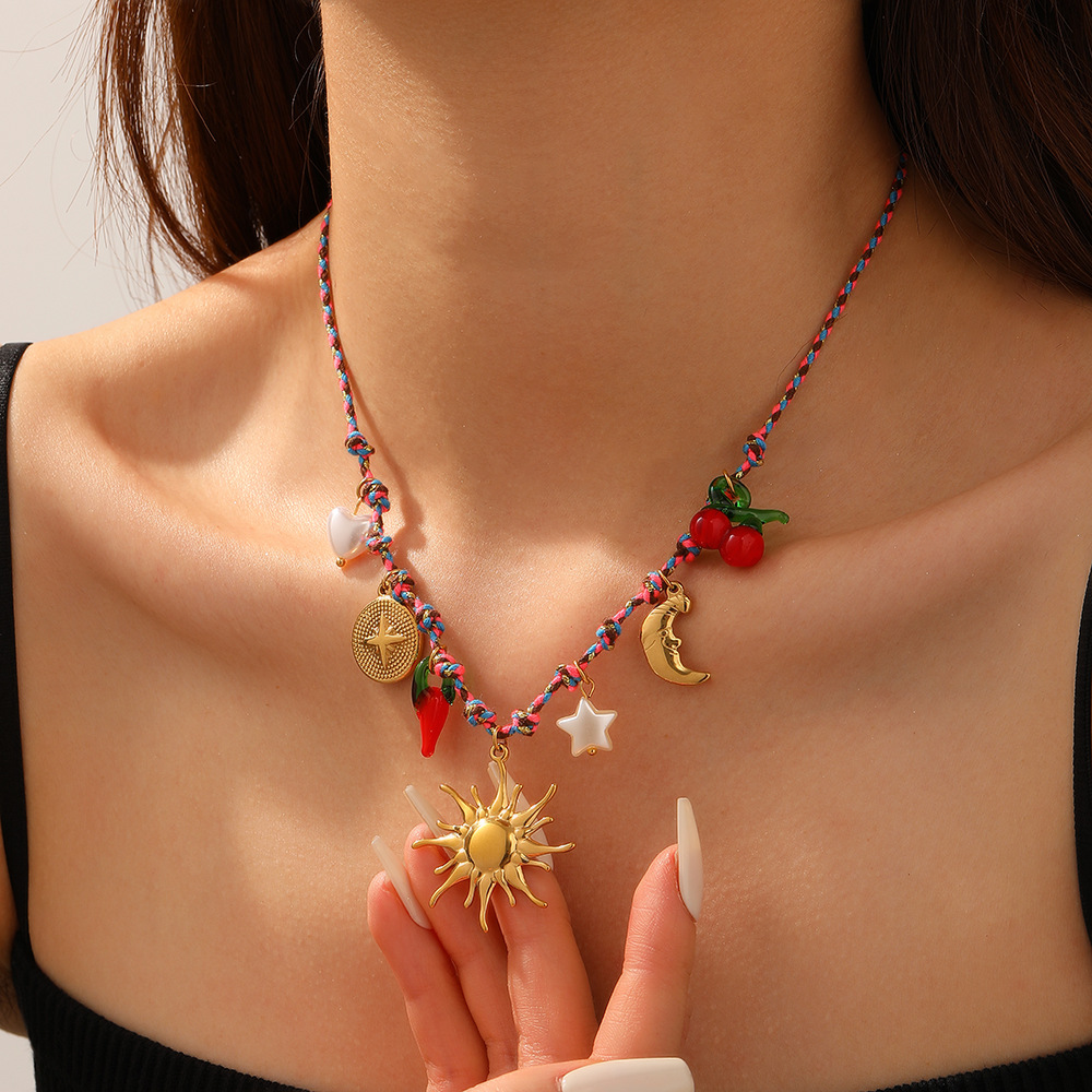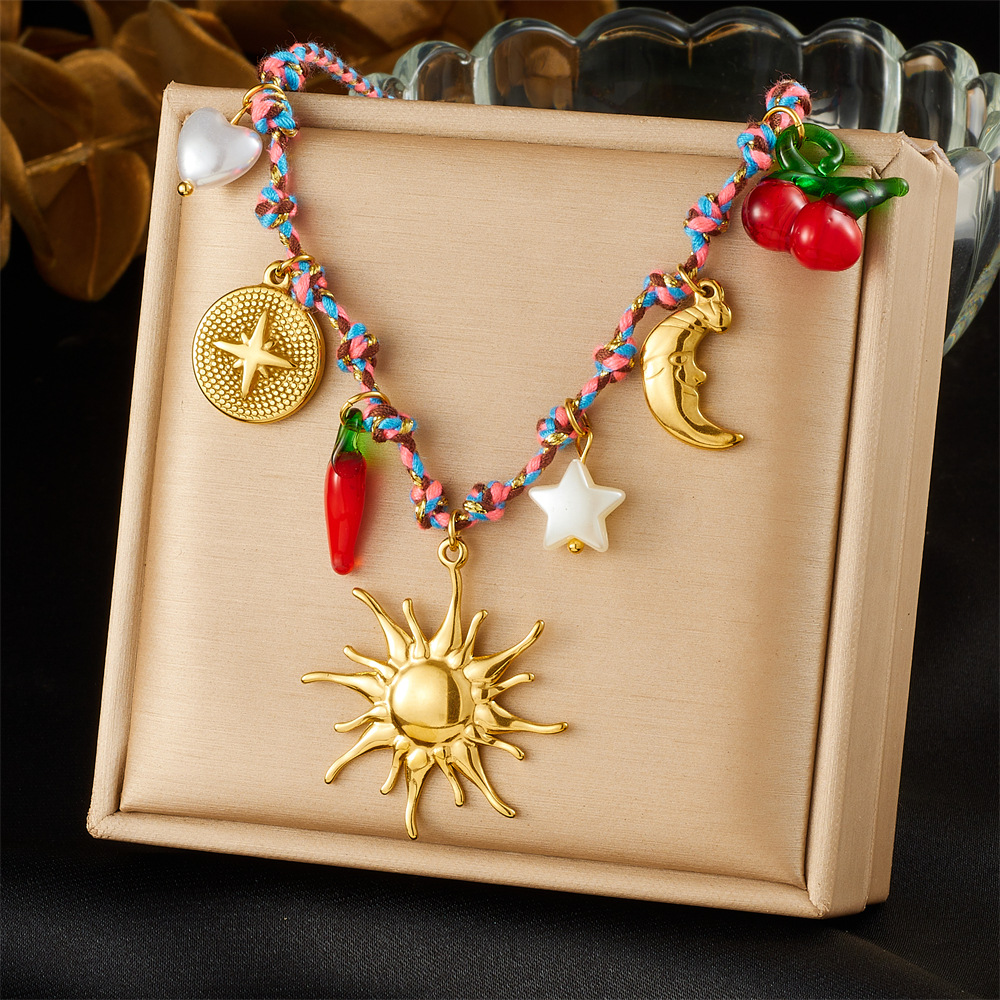 Collar de Acero Inoxidable, acero inoxidable 304, con Hilo de algodón & Acrílico, chapado en color dorado, Joyería & para mujer & esmalte, Vendido por UD