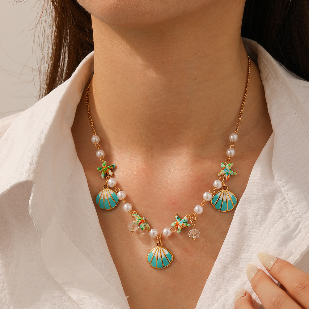 Collar de Acero Inoxidable, acero inoxidable 304, con Cristal & Perlas plásticas & Acrílico, chapado, diferentes estilos para la opción & para mujer & esmalte, Vendido por UD
