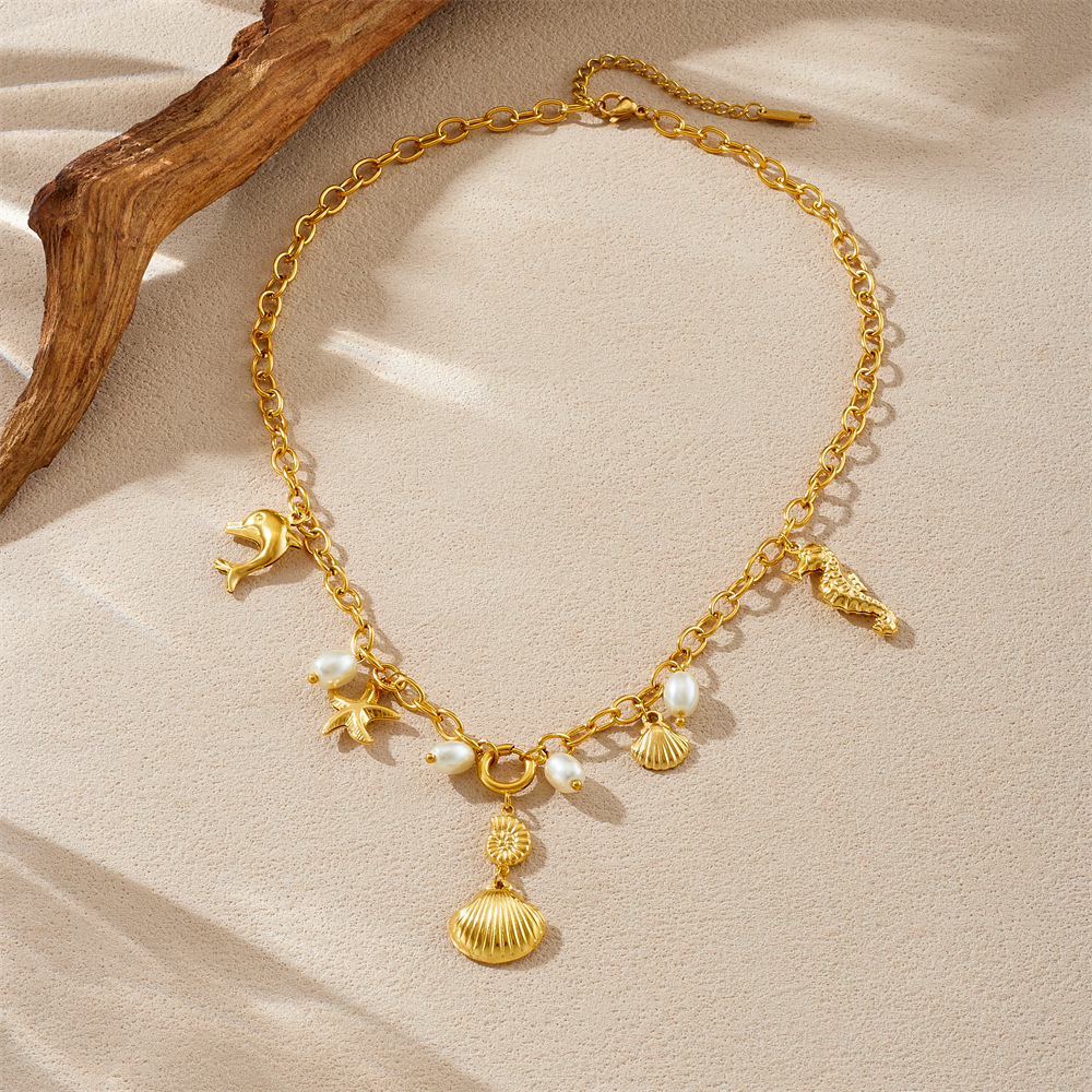 Collar de Acero Inoxidable, acero inoxidable 304, con Perlas plásticas, chapado en color dorado, Joyería & para mujer, Vendido por UD