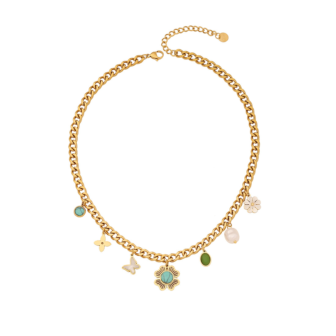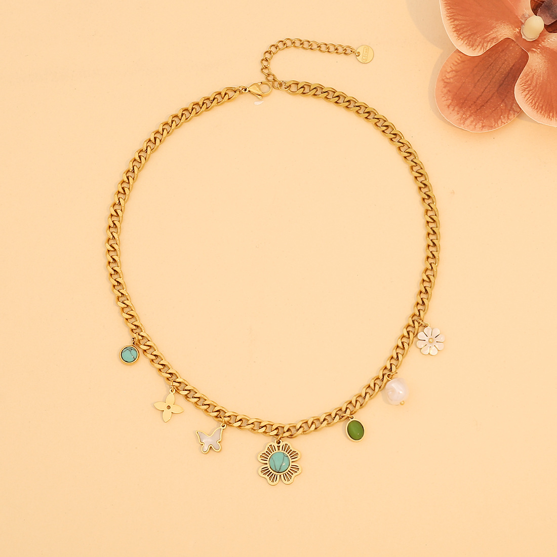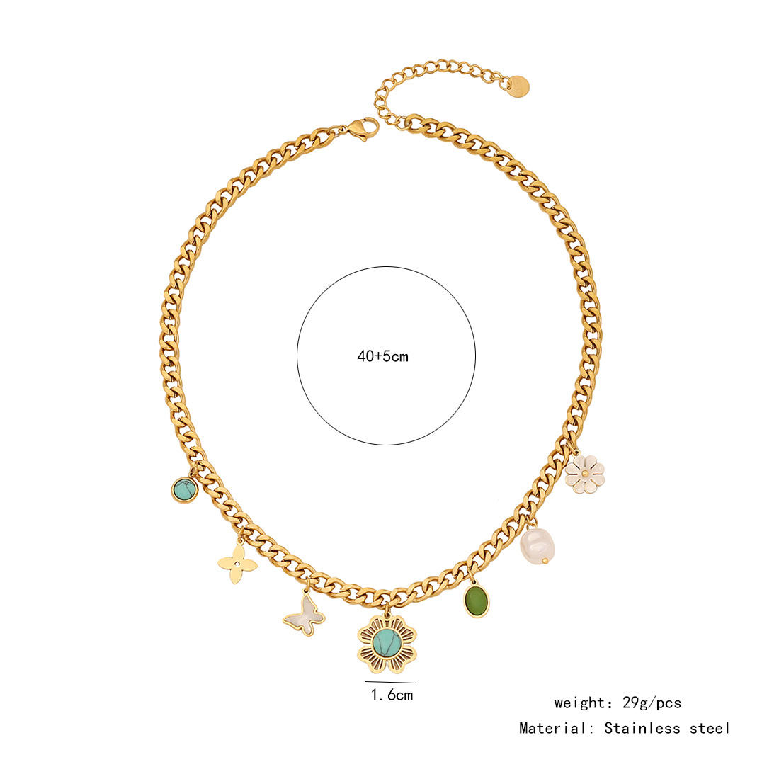Collar de Acero Inoxidable, acero inoxidable 304, con turquesa & Nácar Blanca & Perlas plásticas, chapado, diferentes estilos para la opción & para mujer & esmalte, dorado, Vendido por UD