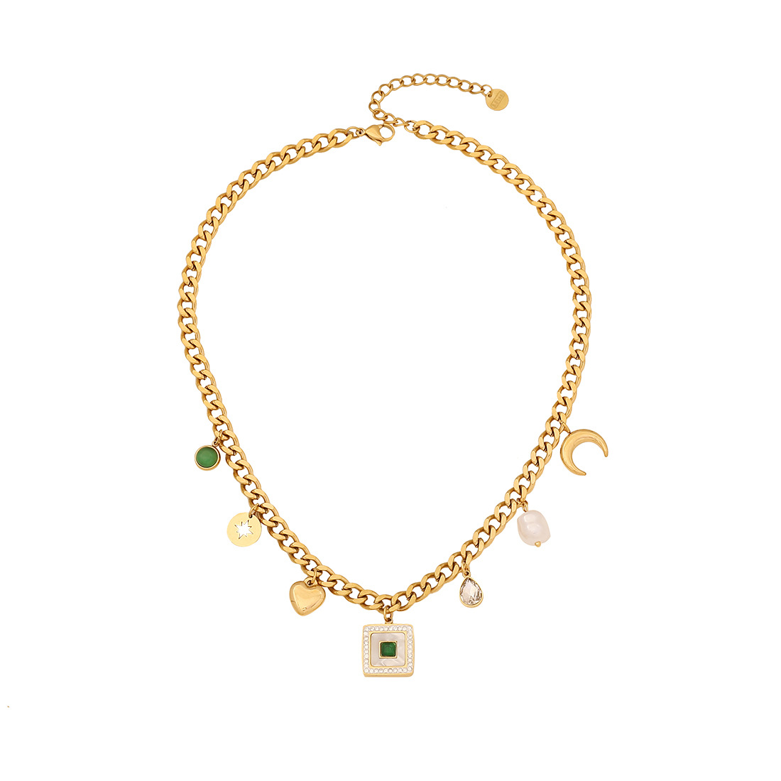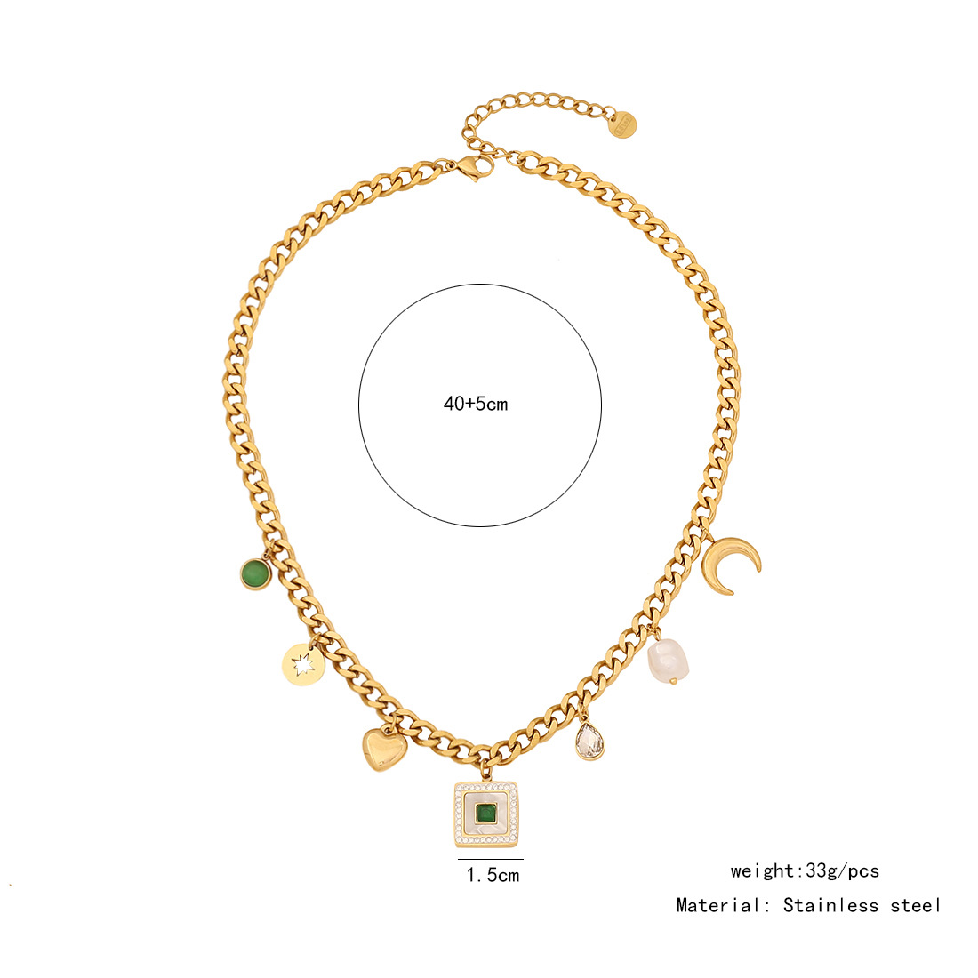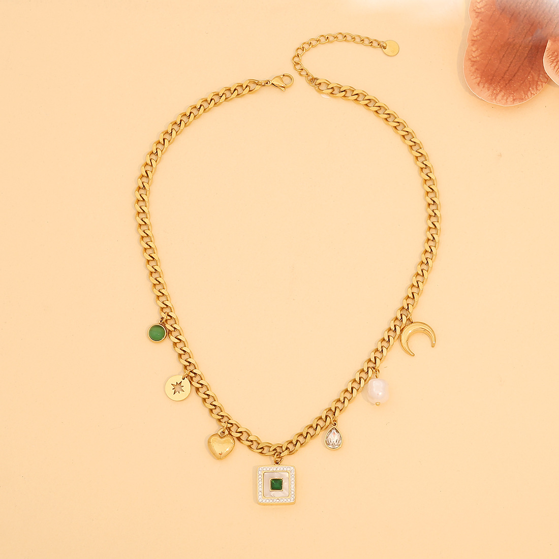 Collar de Acero Inoxidable, acero inoxidable 304, con turquesa & Nácar Blanca & Perlas plásticas, chapado, diferentes estilos para la opción & para mujer & esmalte, dorado, Vendido por UD