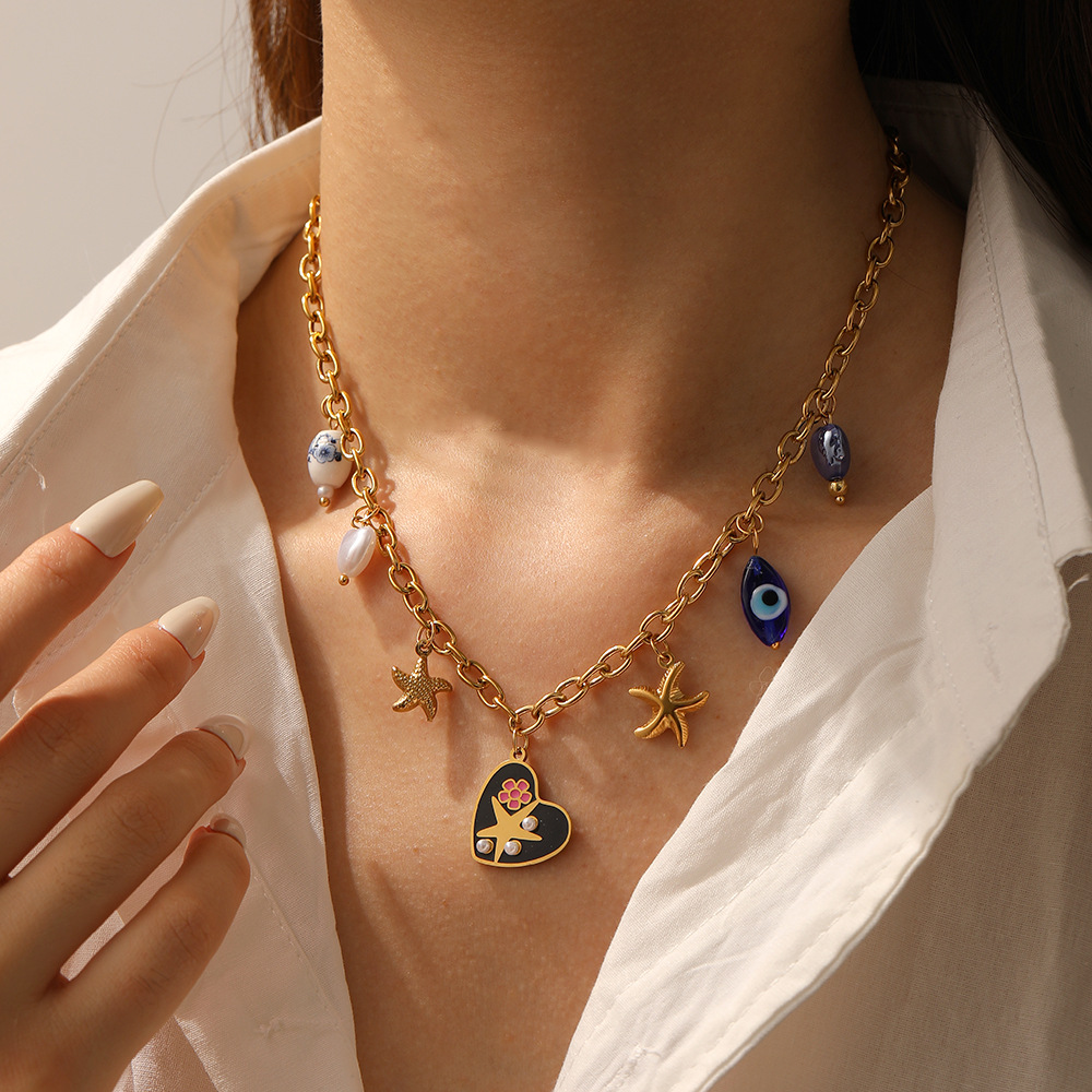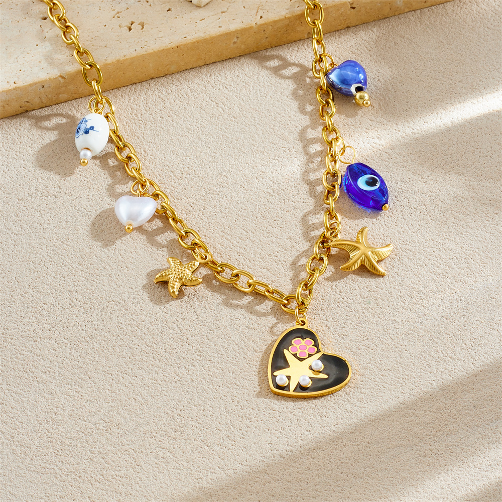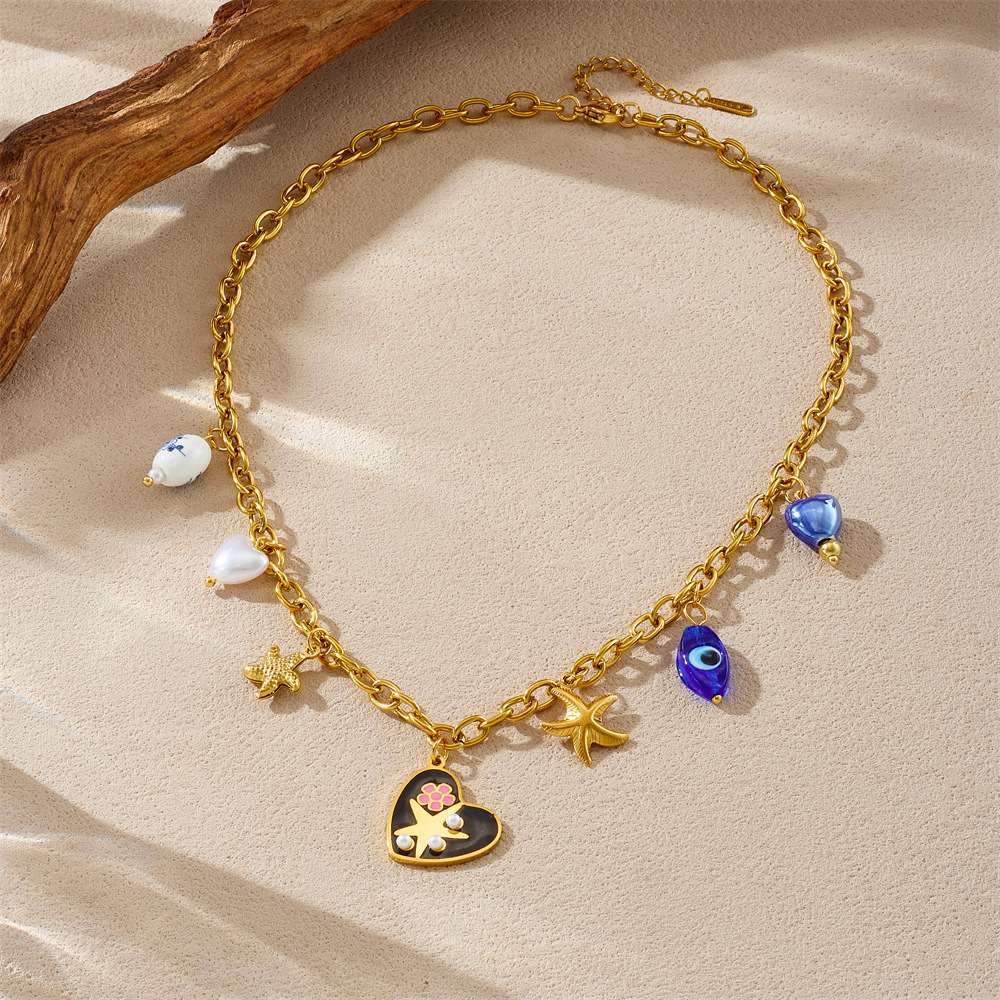 Collar de Acero Inoxidable, acero inoxidable 304, con Perlas plásticas, chapado en color dorado, Joyería & esmalte, más colores para la opción, Vendido por UD