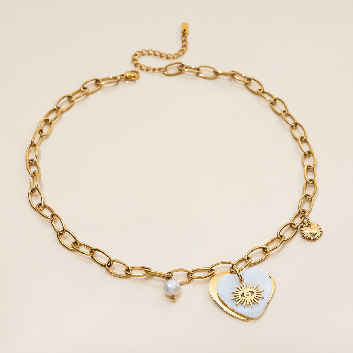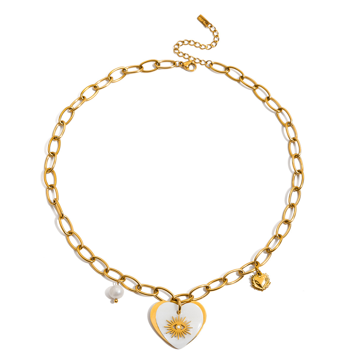 Collar de Acero Inoxidable, acero inoxidable 304, con Nácar Blanca & Vidrio & Perlas plásticas, chapado en color dorado, Joyería & con diamantes de imitación, más colores para la opción, Vendido por UD