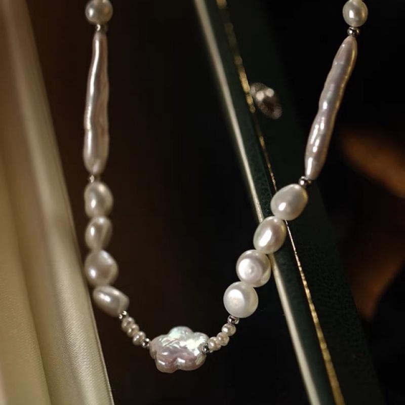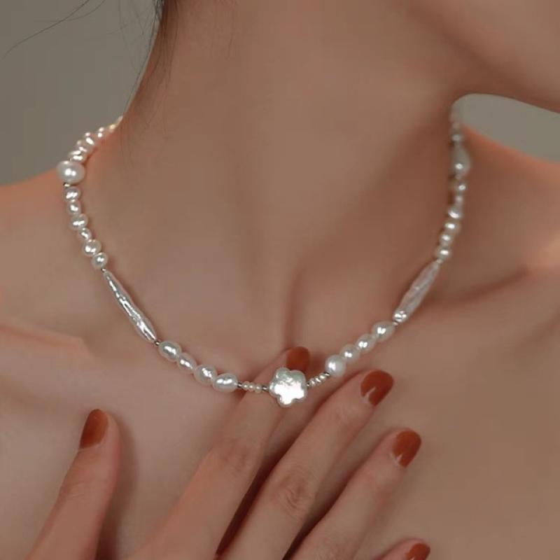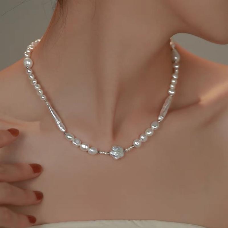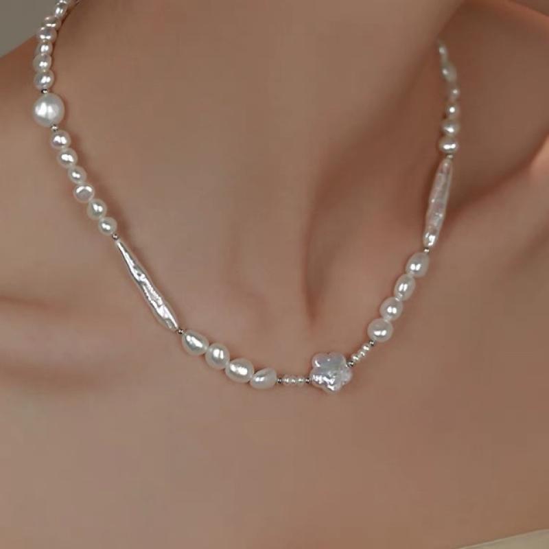Collar de Perlas Natural de Freshwater, Perlas cultivadas de agua dulce, con Plata de ley 925, Barroco, Joyería, más colores para la opción, 6x7mm, Vendido por Sarta