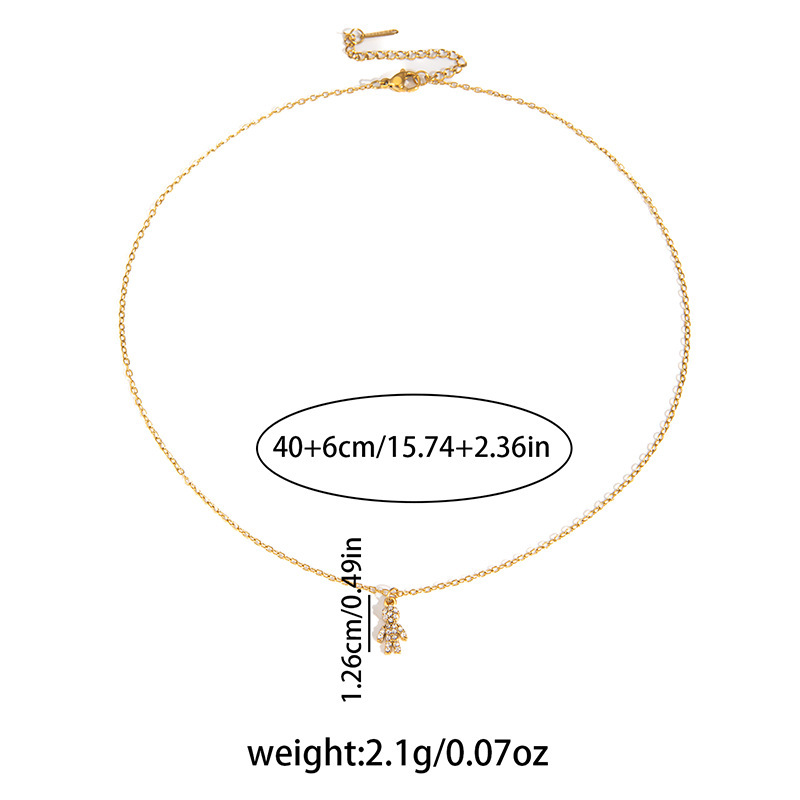 Collar de acero inoxidable Circonita, con 5cm extender cadena, Pulido fino & cadena oval & con el patrón de la letra & para mujer & con circonia cúbica, color original, 25mm, longitud:aproximado 17.8 Inch, Vendido por Sarta