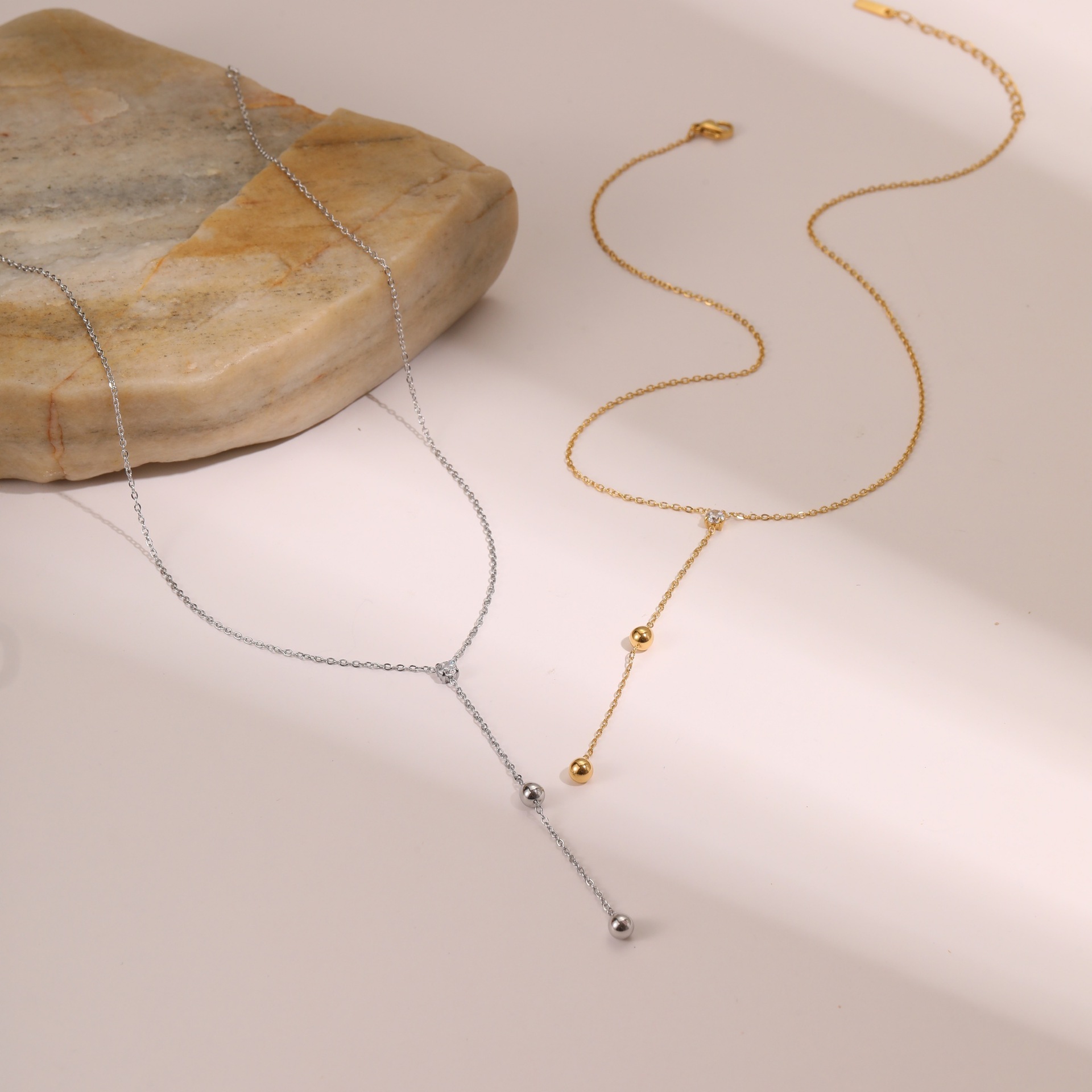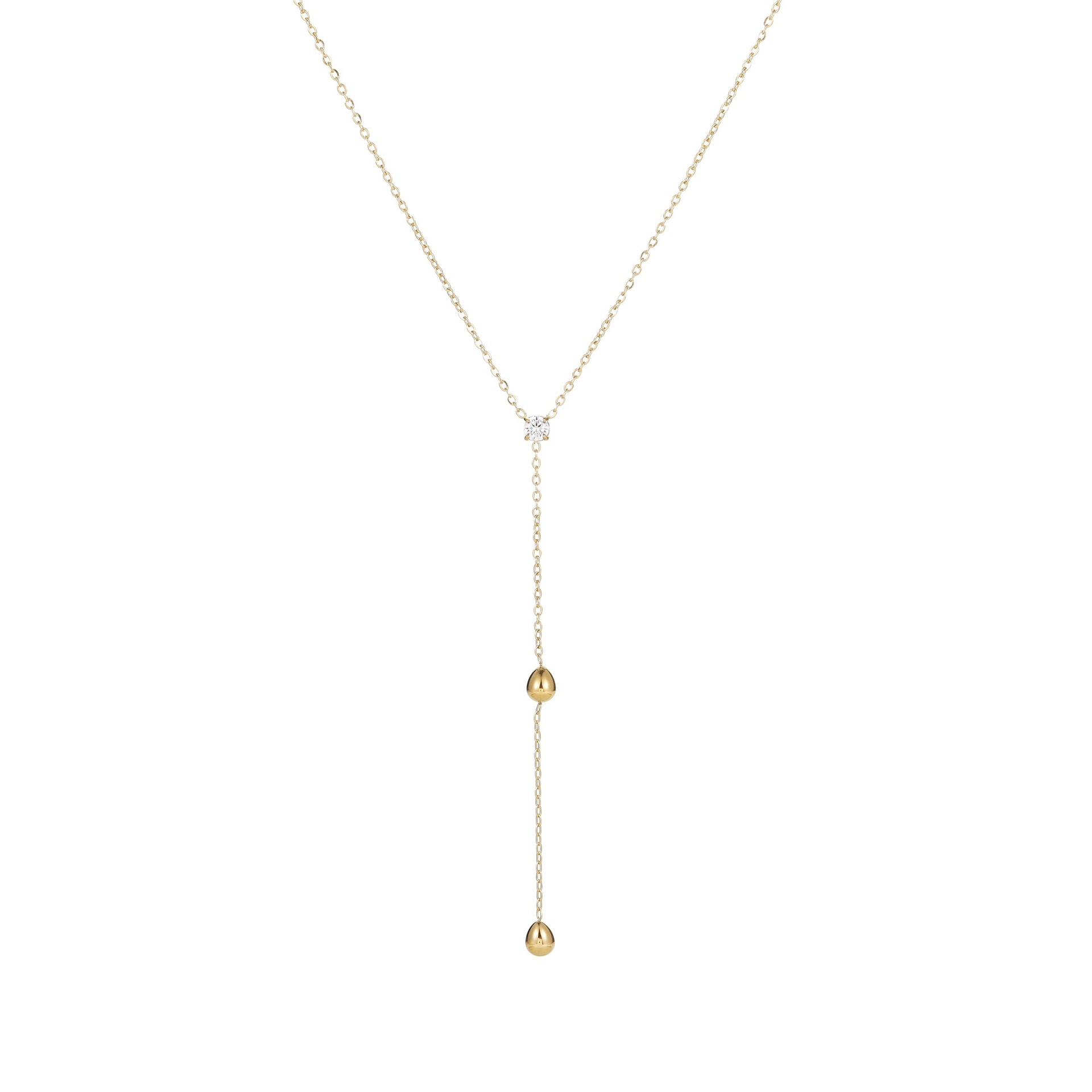 Collar de acero inoxidable Circonita, acero inoxidable 304, con cúbica circonia, Esférico, chapado en color dorado, cadena oval & hueco, 21x24.5mm, 2.5x2mm, longitud:aproximado 18 Inch, Vendido por Sarta