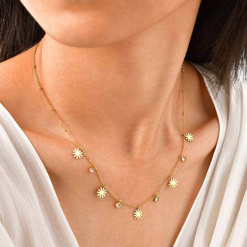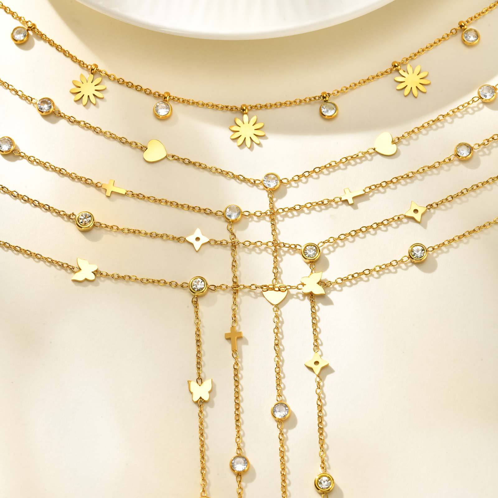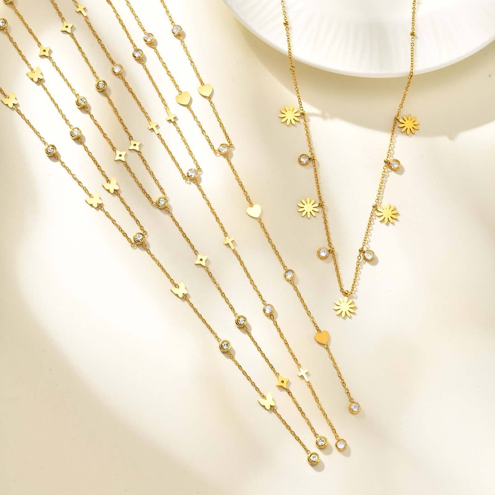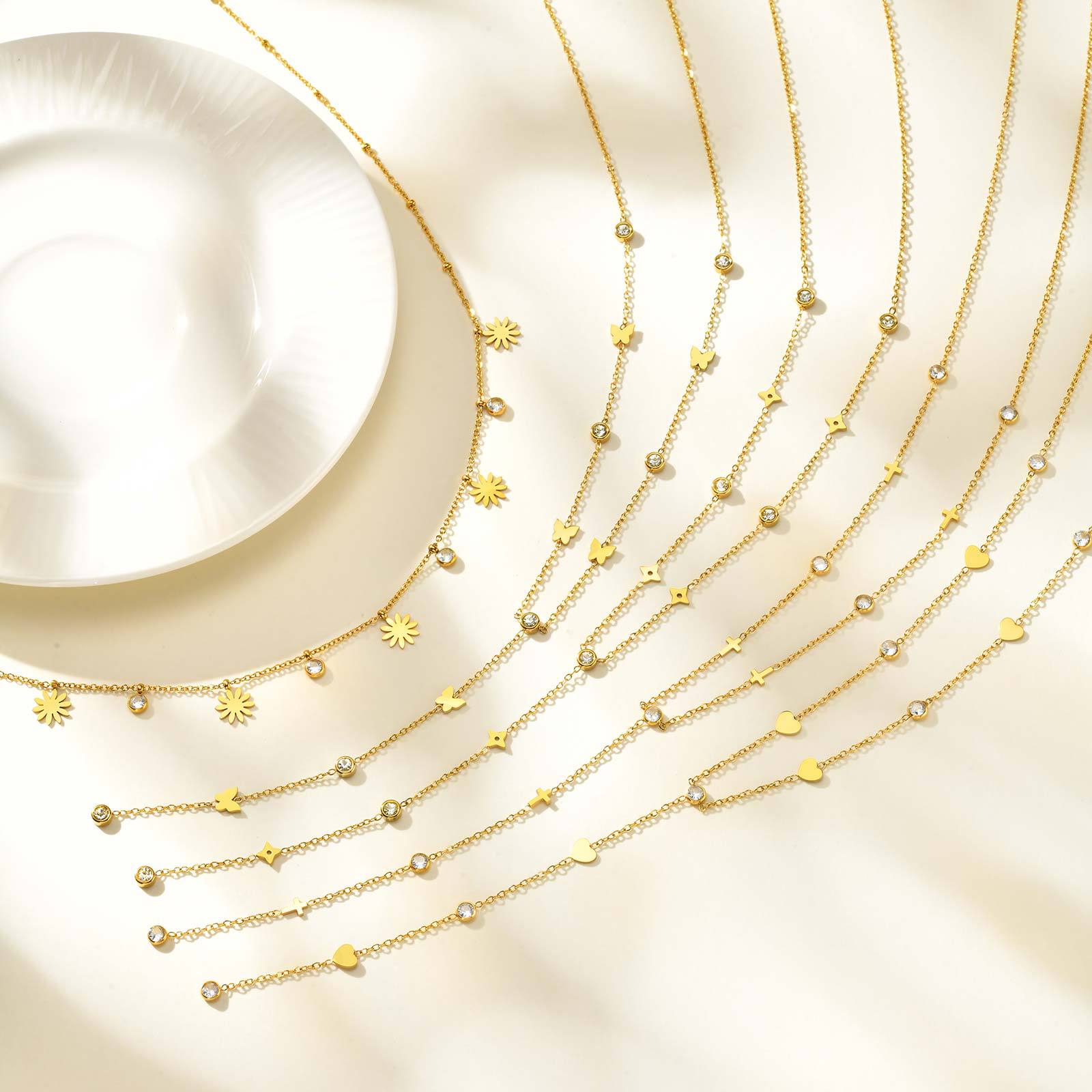 Collar de acero inoxidable Circonita, acero inoxidable 304, con cúbica circonia, chapado, Joyería & diferentes estilos para la opción & para mujer, dorado, Vendido por UD