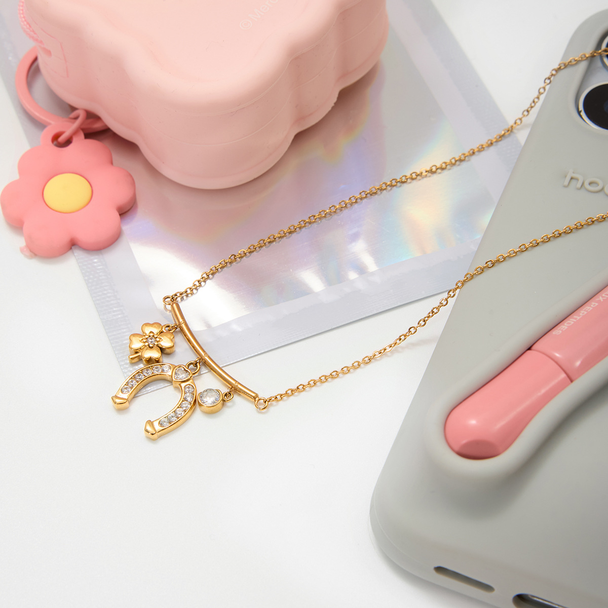 Collar de acero inoxidable Circonita, con 5cm extender cadena, Pulido fino & cadena oval & con el patrón de la letra & para mujer & con circonia cúbica, color original, 25mm, longitud:aproximado 17.8 Inch, Vendido por Sarta
