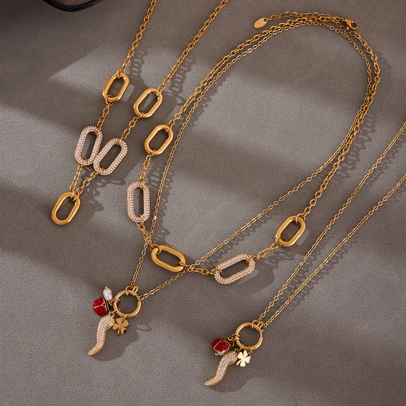 Golden chili pepper zircon necklace