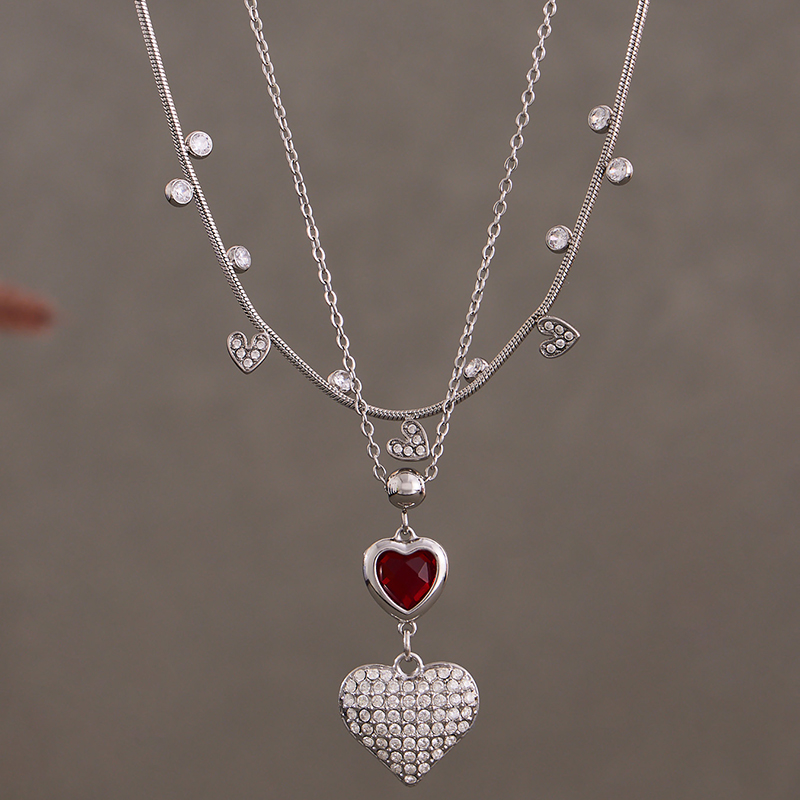 Collar de acero inoxidable Circonita, chapado, cadena oval & con circonia cúbica, más colores para la opción, 6x7x2.5mm, 4.5x7x2mm, 2x3mm, 1mm, longitud:aproximado 16 Inch, Vendido por Sarta