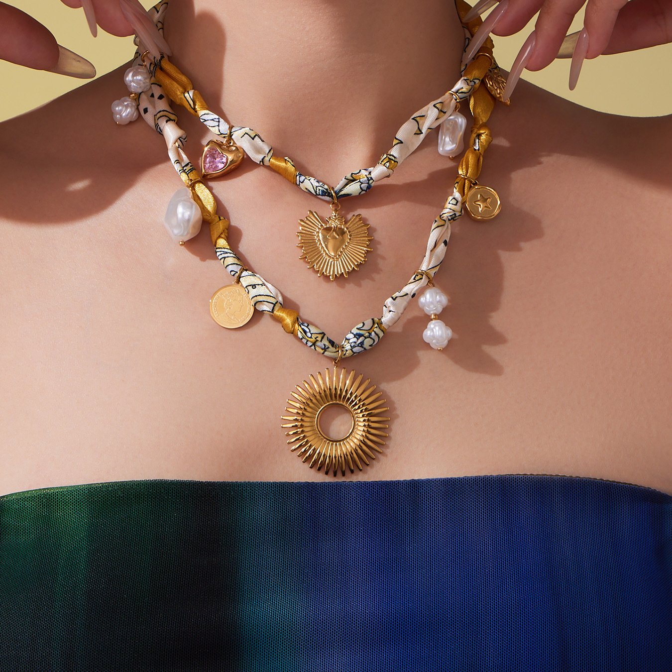 Collar de acero inoxidable Circonita, acero inoxidable 304, con seda & Perlas plásticas, chapado en color dorado, Joyería & micro arcilla de zirconia cúbica, más colores para la opción, Vendido por UD