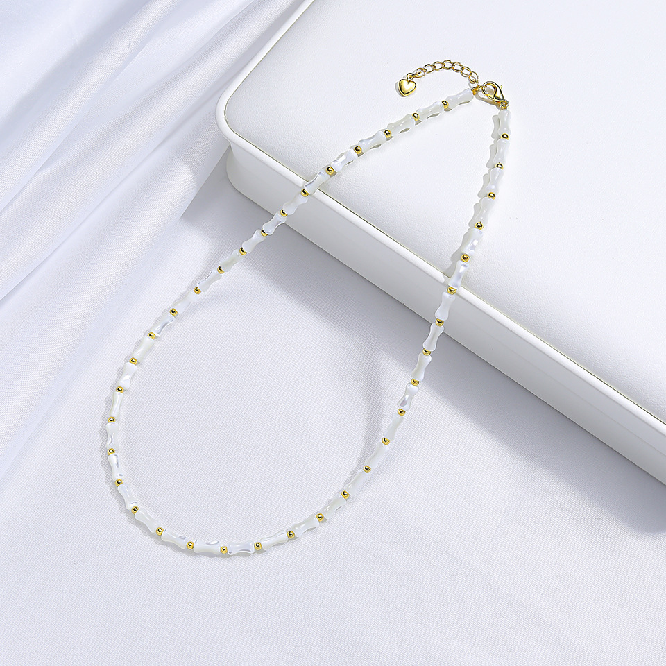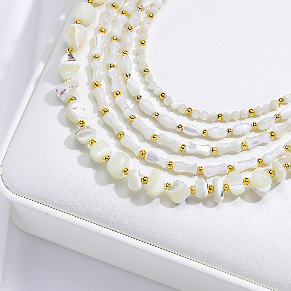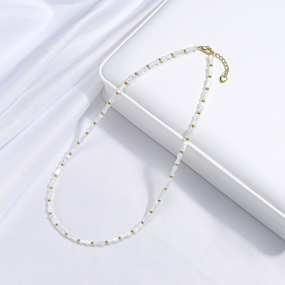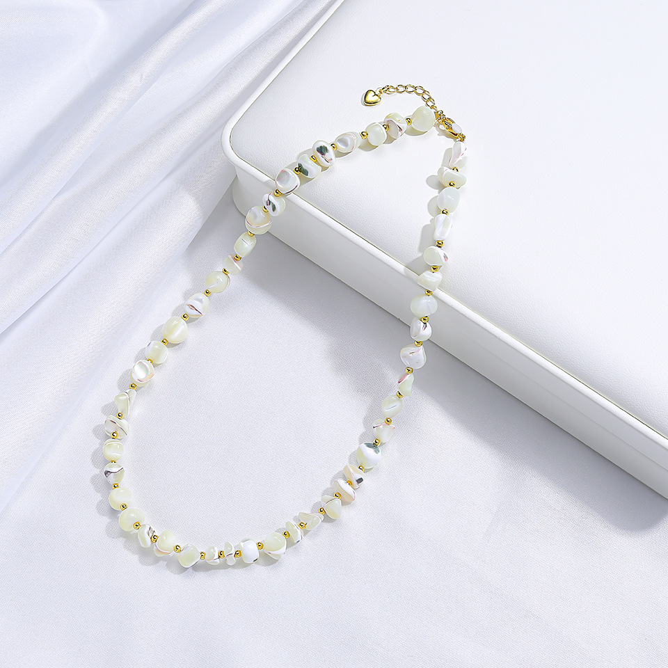 Collar de concha, Concha de labios blancos, con metal, chapado en color dorado, Joyería, más colores para la opción, libre de níquel, plomo & cadmio, 100x70x20mm, longitud:42 cm, Vendido por Sarta