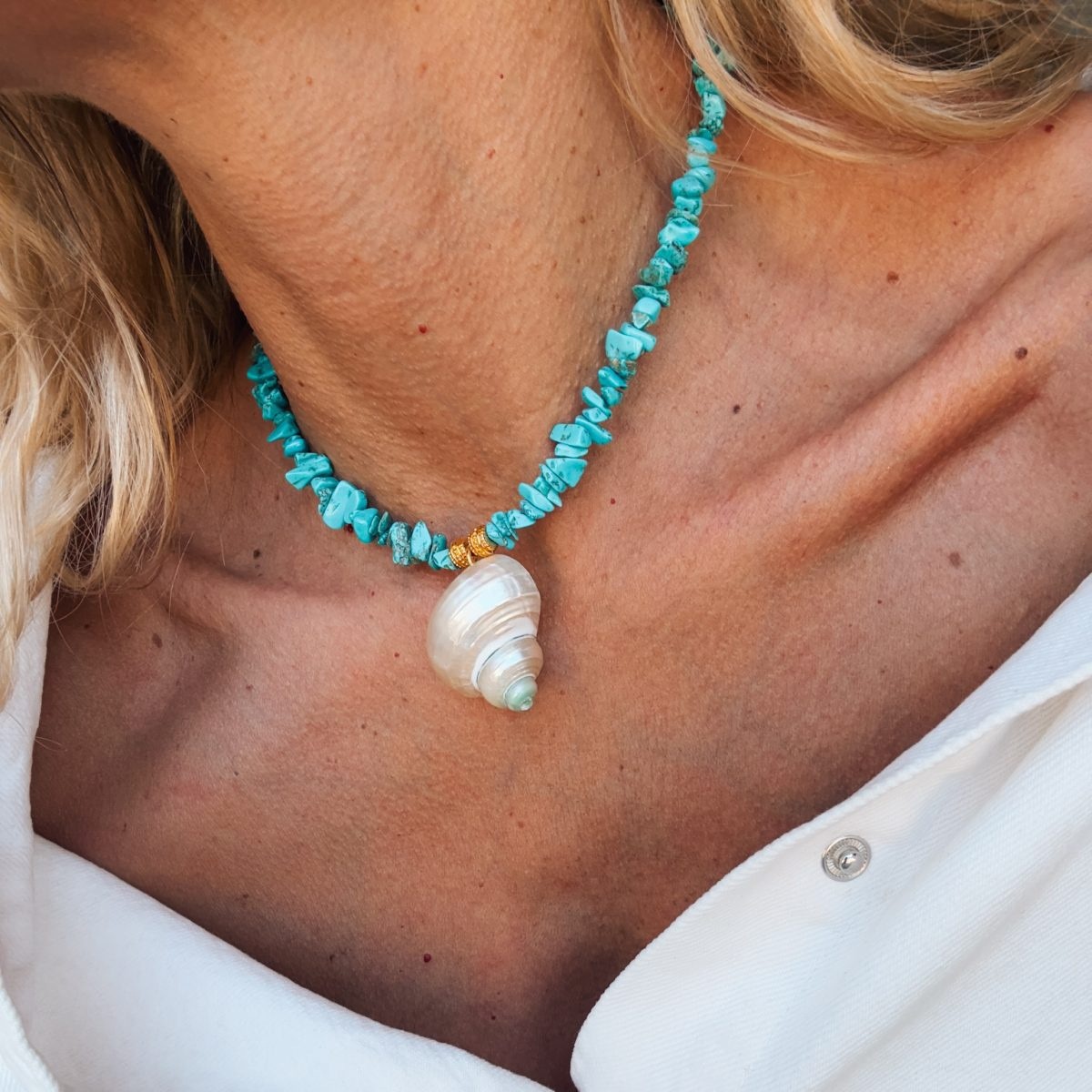 Collar de concha, Perlas plásticas, con turquesa & Nácar, chapado, Joyería & para mujer, Vendido por UD