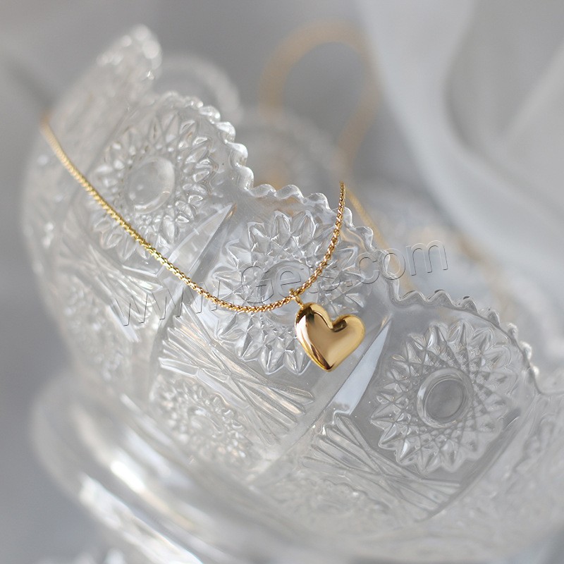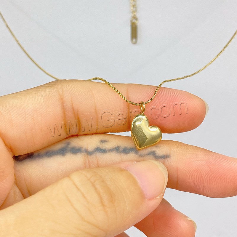 Collar de la joyería de titanio, Partículas de acero, con 2.36inch extender cadena, Corazón, Recubrimiento iónico al vacío, unisexo, color original, 11x9.6mm, longitud:aproximado 16.5 Inch, Vendido por UD