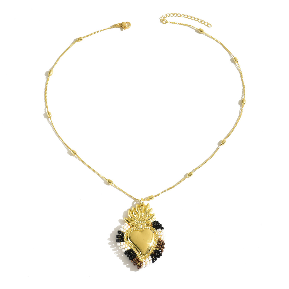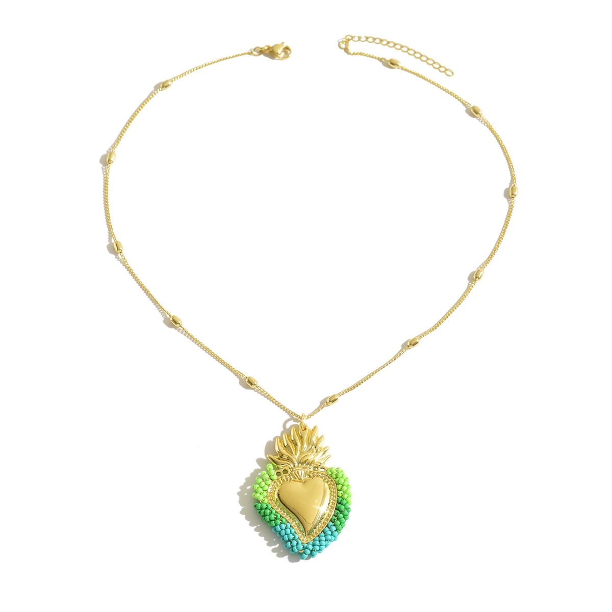 Collar de perlas de cristal semilla, aleación de zinc, con Rocallas de vidrio & resina, chapado en color dorado antiguo, con diamantes de imitación, más colores para la opción, libre de níquel, plomo & cadmio, 76x50mm, longitud:aproximado 15.5 Inch, Vendido por Sarta