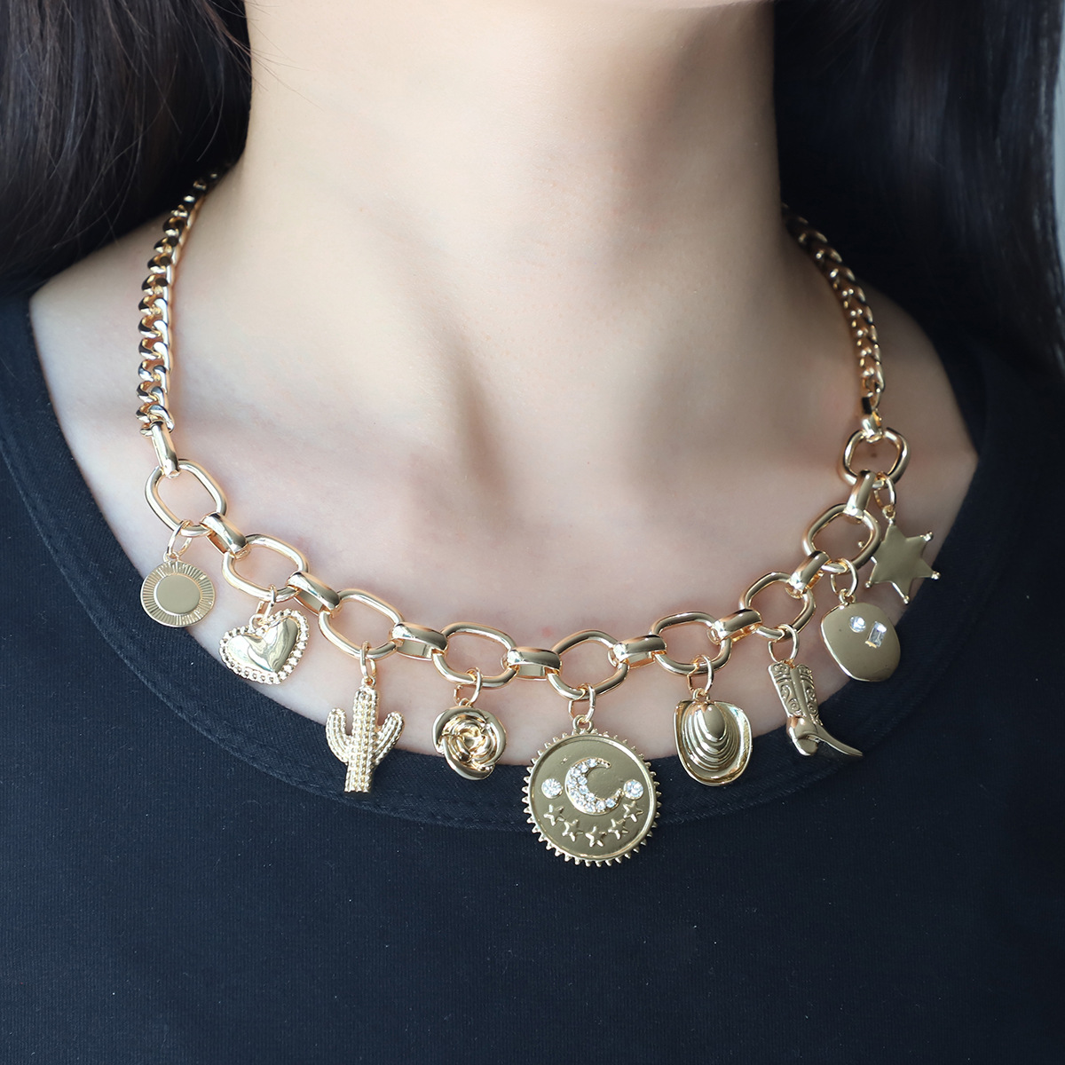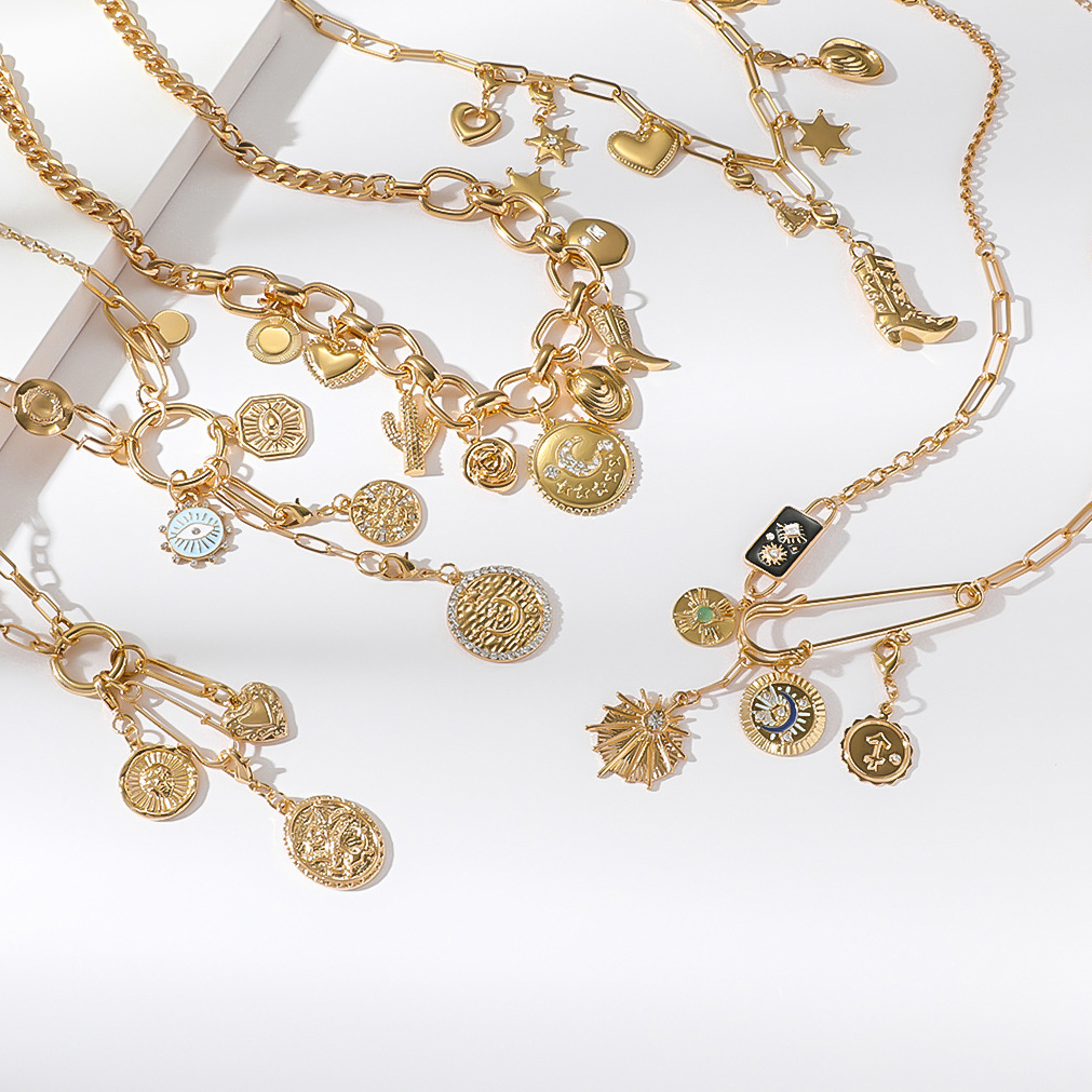 Evil collar de la joyería de los ojos, aleación de zinc, diferentes estilos para la opción & para mujer & esmalte & con diamantes de imitación, dorado, Vendido por UD