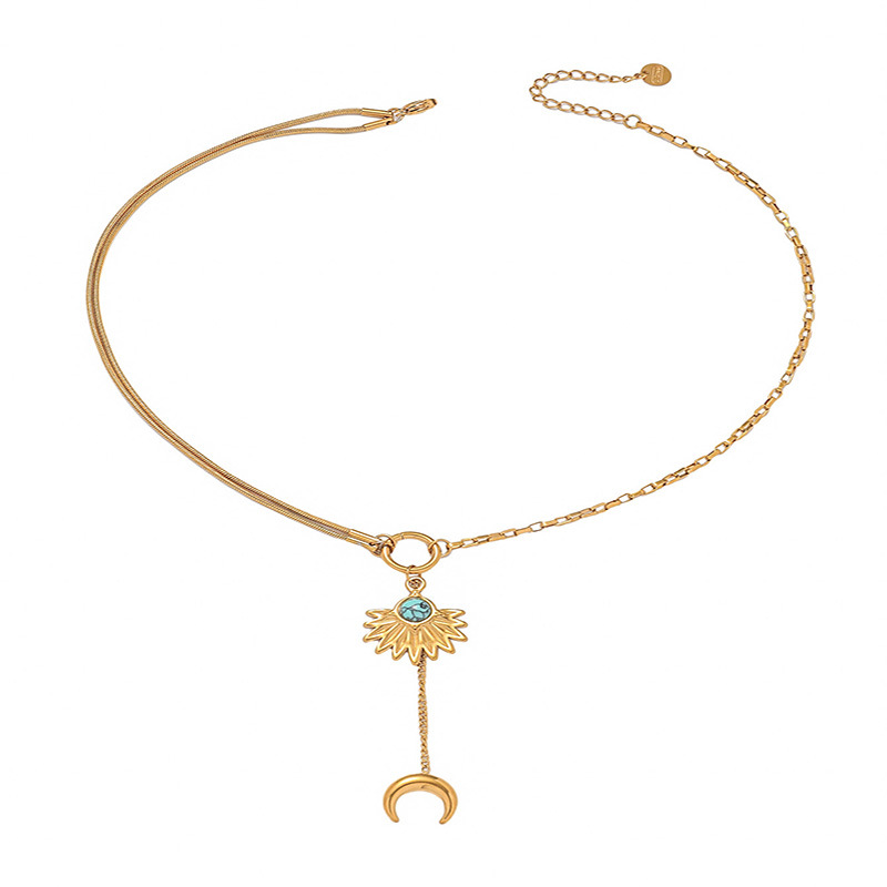 Collar de Acero Inoxidable, acero inoxidable 304, con turquesa, con 2.16 Inch extender cadena, chapado, Joyería & para mujer, dorado, longitud:15.75 Inch, Vendido por UD