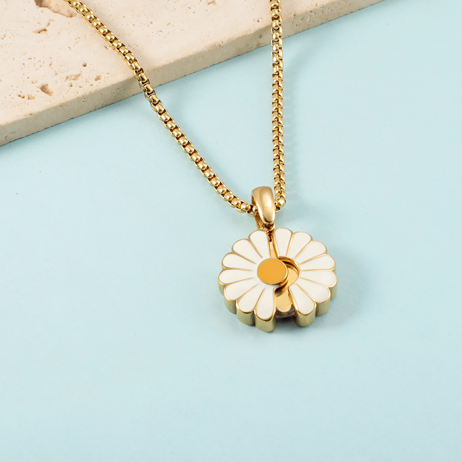 Collar de Acero Inoxidable, acero inoxidable 304, Flor, chapado en color dorado, diverso tamaño para la opción & para mujer & esmalte, más colores para la opción, Vendido por UD
