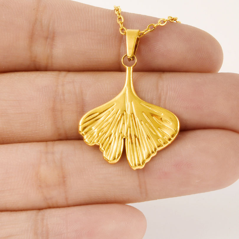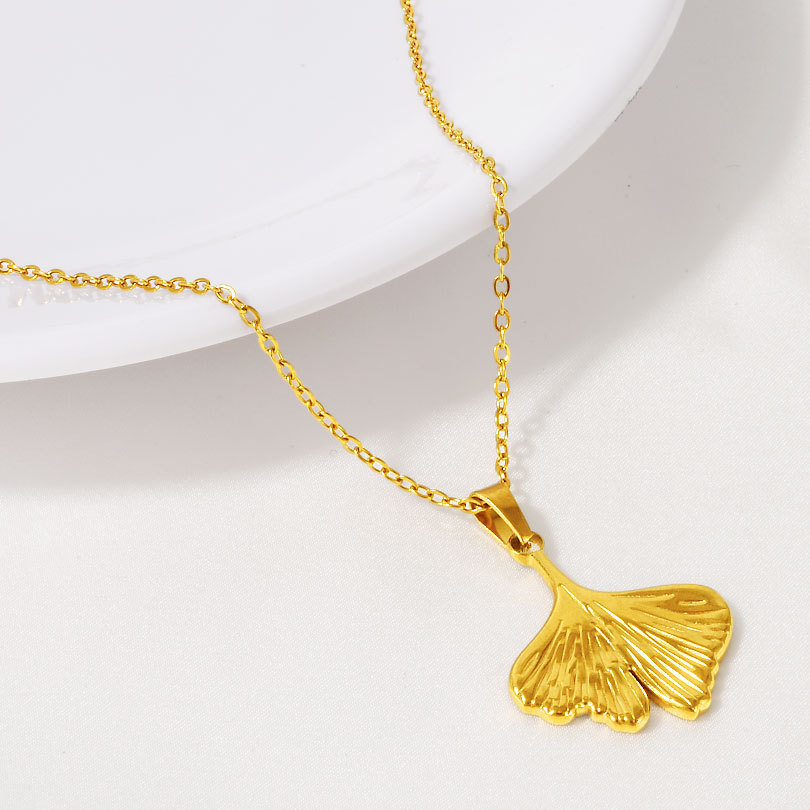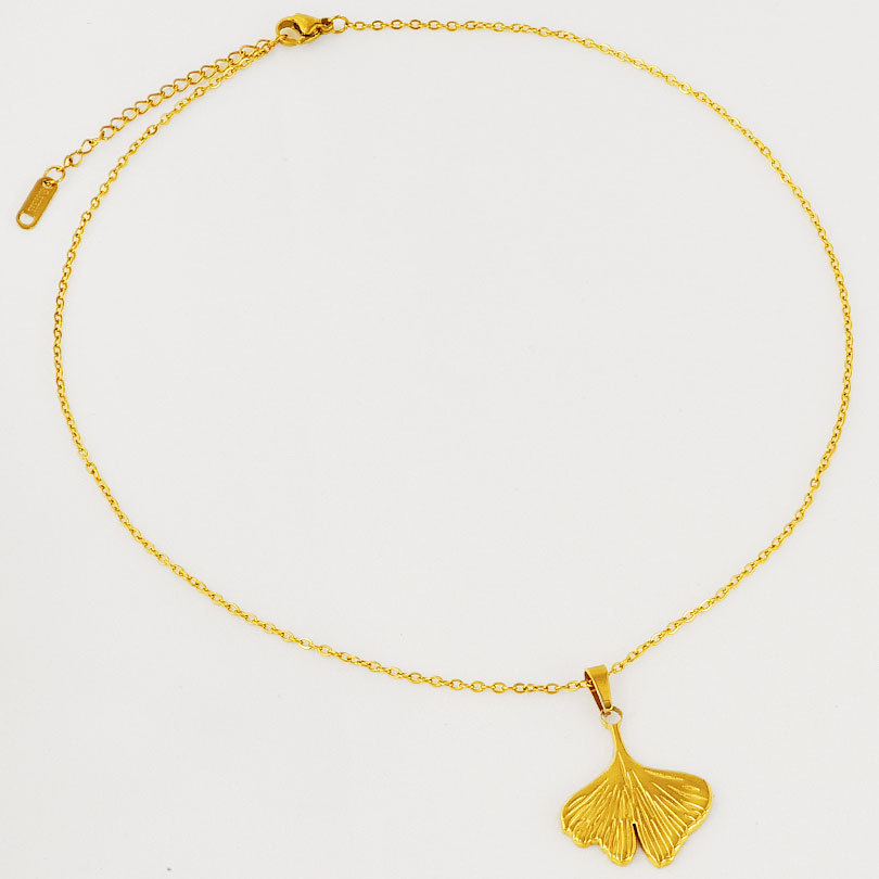 Collar de Acero Inoxidable, acero inoxidable 304, hoja del Ginkgo, chapado, para mujer, más colores para la opción, longitud:40 cm, Vendido por UD